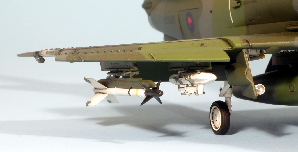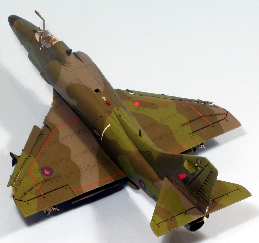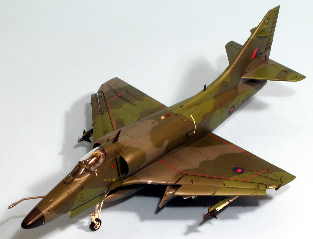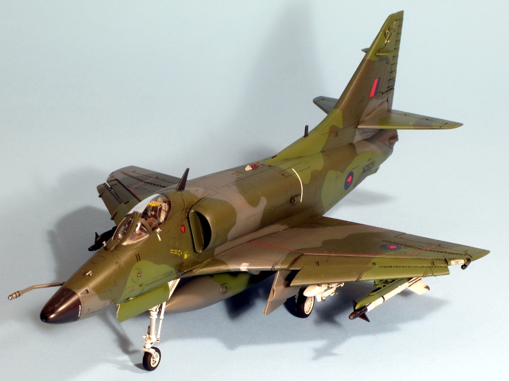 Built at the same time as my A4D-2 and A-4M Skyhawks is this New Zealand A-4K from Hasegawa. The same comments on construction apply, the fit of this example being slightly better because the fuselage, from the A-4E/F kit, doesn’t have a separate nose. Hasegawa supply the necessary parts for the Kahu upgrade in white metal, these being the underwing RWR sensors near the wing tips, the small horizontal aerials on the tail fin and the clear light on the fuselage. I replaced the latter with a piece of clear plastic hacked from a spare HUD. The seat was replaced by a Cutting Edge example, which was a waste of money (the seat is good, but you can barely see it through the tiny canopy!). The instrument panel is incorrect for a Kahu Skyhawk, but as it cannot be seen at all, I didn’t bother replacing it. There are meant to be 6 Mk 82 bombs under the wings but I hadn’t got round to attaching them when the pictures were taken. The kit supplies decals for a pre-Kahu upgrade A-4K, and one for a Kahu example. I used the latter as I like my Skyhawks to be as different as possible and wanted to use the white metal parts. The paint is mostly Humbrol but I used Xtracolour for the European One grey. The kit decals went down without silvering using first Microsol followed by Daco Products Strong Setting Solution and then Mr Hobby Mr Mark Softer on the stubborn decals. The final finish is a mixture of Pollyscale Satin and Flat varnishes.