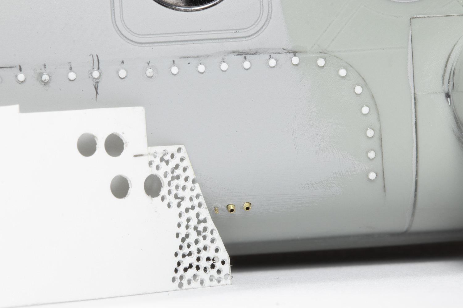A further detail added at this stage were at least 19 little vents around the fuselage, made from 0.6mm and 0.3mm Albion Alloys brass tubing. These litter the fuselage and are quite visible in photos once you see them. They are also noticeable for how badly installed they are on the real thing! There are definitely more that I could have added, especially on the underside of the fuselage.