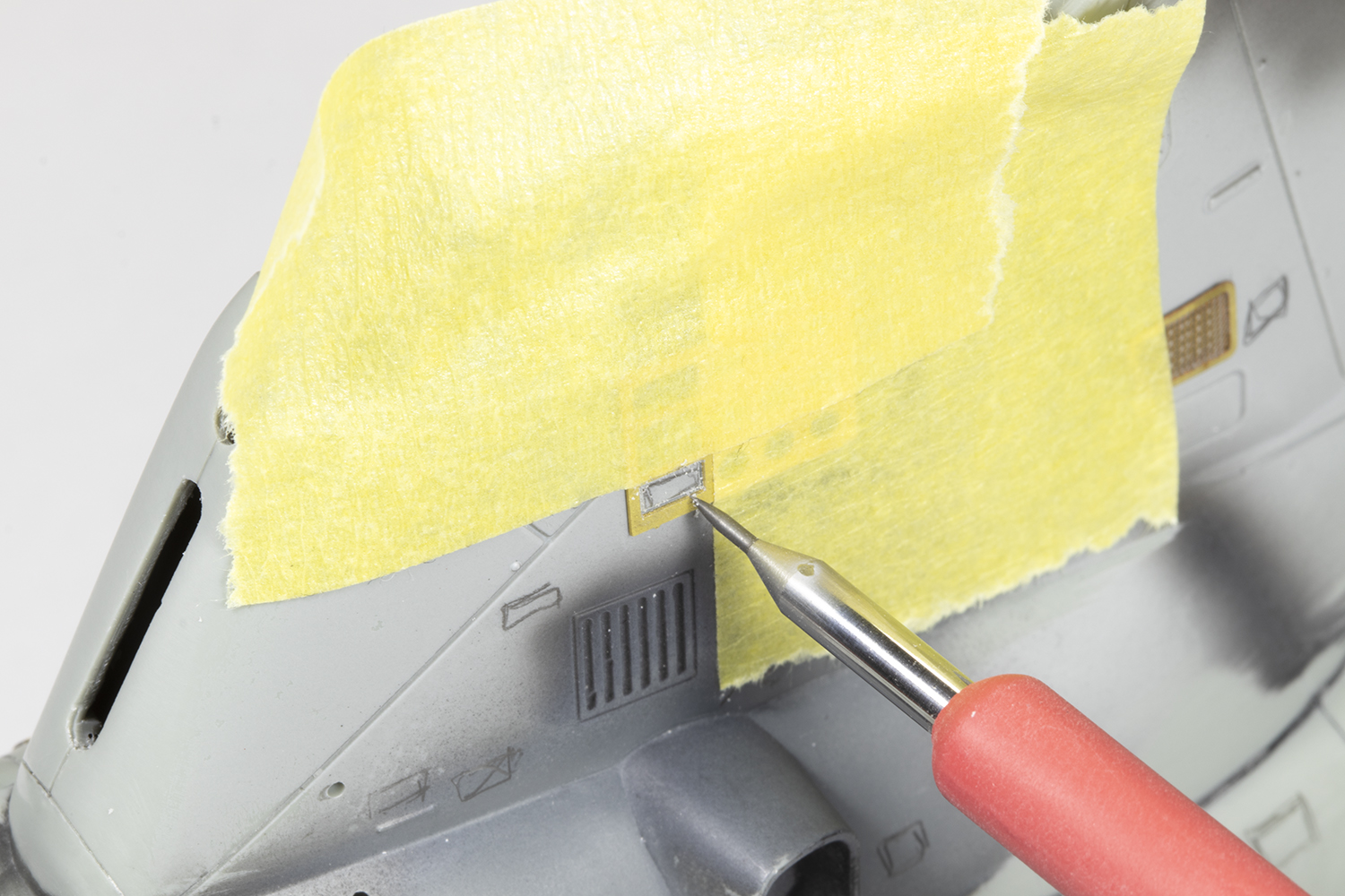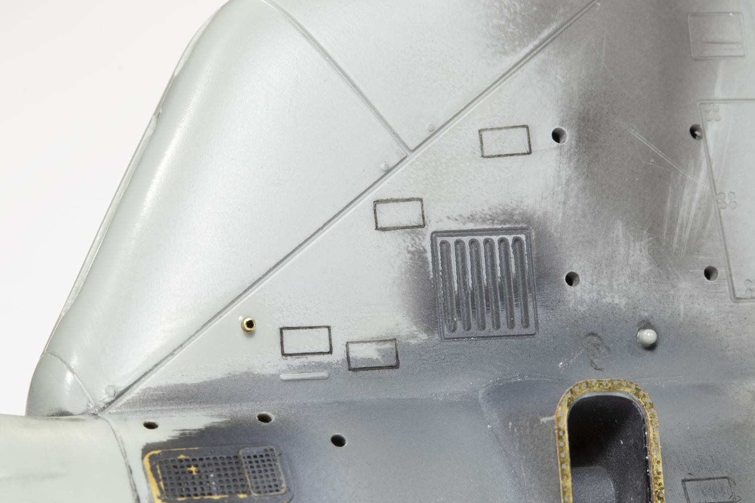 If I can, I like to centre a project around a particular feature that’s a bit different. When perusing reference photos and comparing them to the plastic in the kit, what became obvious was the fictional surface detail moulded by Academy. The real thing is festooned with positive rivets, often somewhat wonky, with almost no panel lines. The kit, on the other hand, provides deep and wide recessed panel lines. An early decision was to fill all that and represent the rivets with resin decals made by Archer Fine Transfers. I knew they would be out of scale and that I could never replicate the pattern closely, but I hoped they would give the flavour of what they look like. At the time, Archer rivets were what was mainly available, and so £80 later, I had enough to do this aircraft. Quinta and HGW have since released similar, and probably better, products at a quarter of the price.