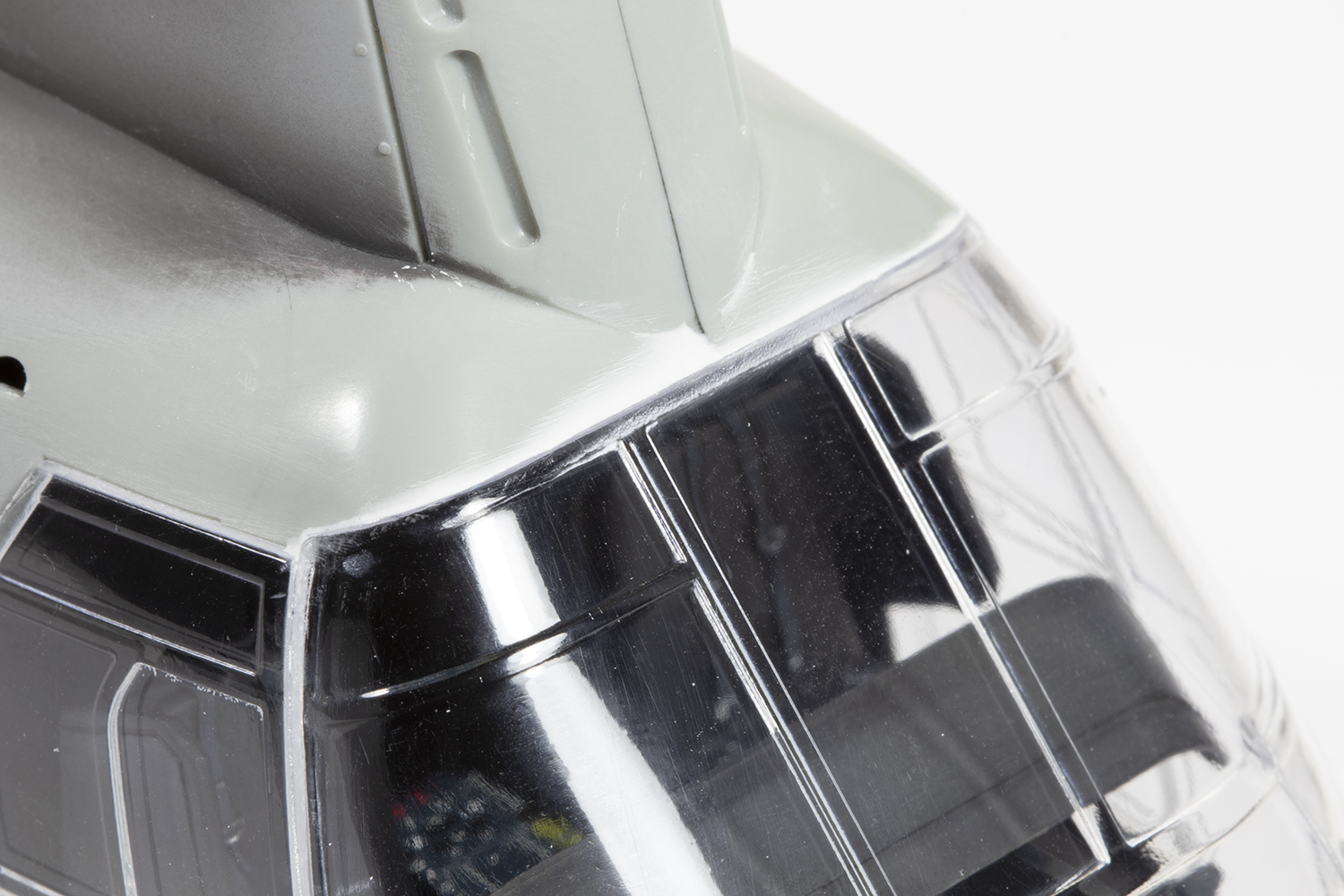 The clear porthole windows fit pretty well, but are a little proud. Several of them I filled with UV-setting clear resin and sanded and polished them down, which improved their appearance somewhat.