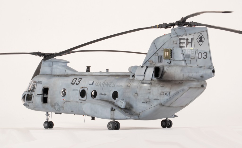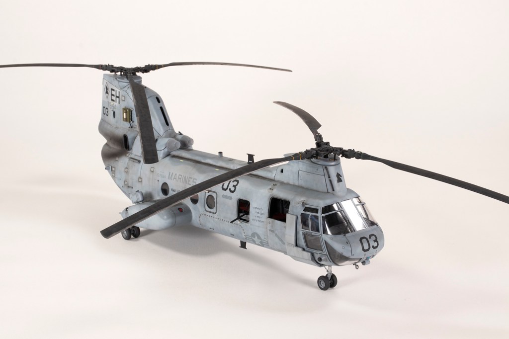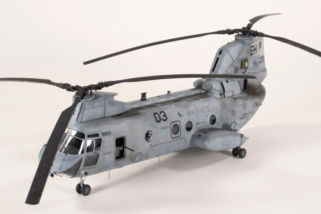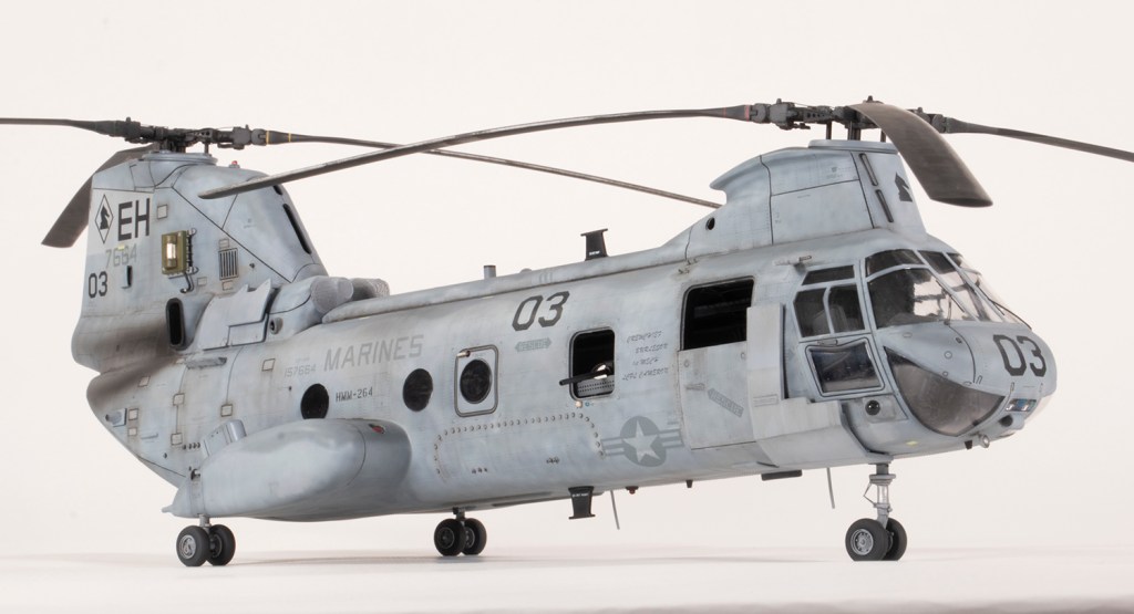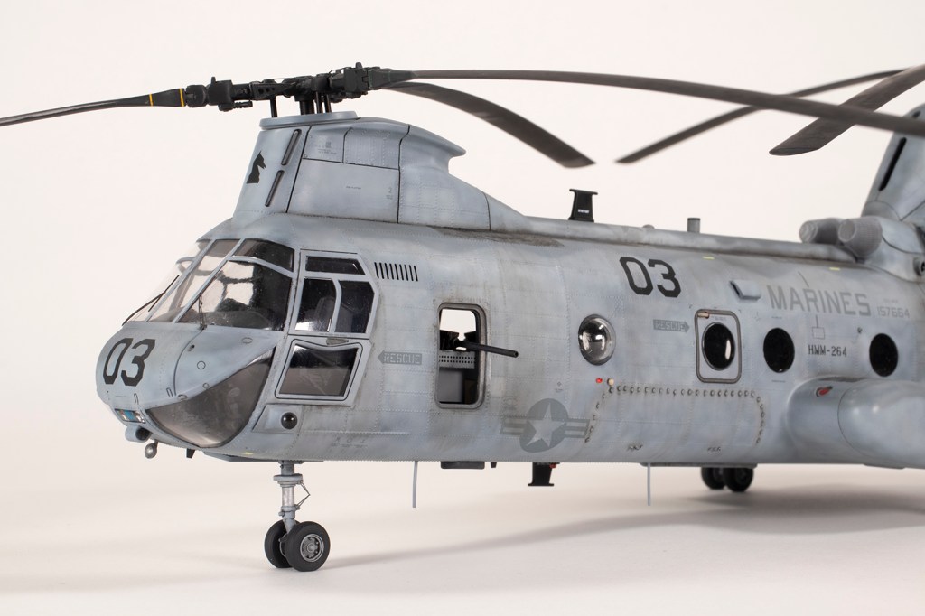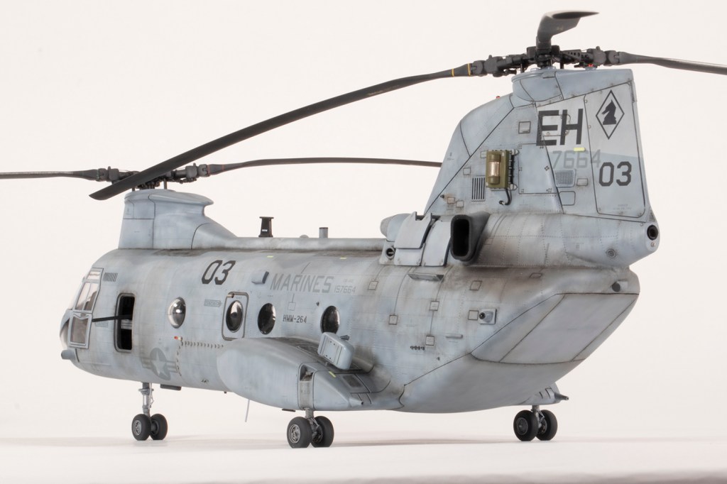 Modellers of 1/48 rotorcraft are fortunate that the range of operational US tandem designs by the pioneering Piasecki company (subsequently Vertol and then Boeing Vertol) can now be made in this scale, ranging from the H-21 Workhorse through the HUP Retriever, the H-46 Sea Knight and the almighty CH-47 Chinook. In 2004, Academy tooled the first of multiple versions of the H-46, starting with this boxing of the USMC CH-46E. At the time it was widely hailed as accurate and a pleasure to build, but (frighteningly) 2004 is 19 years ago, and things have moved on.