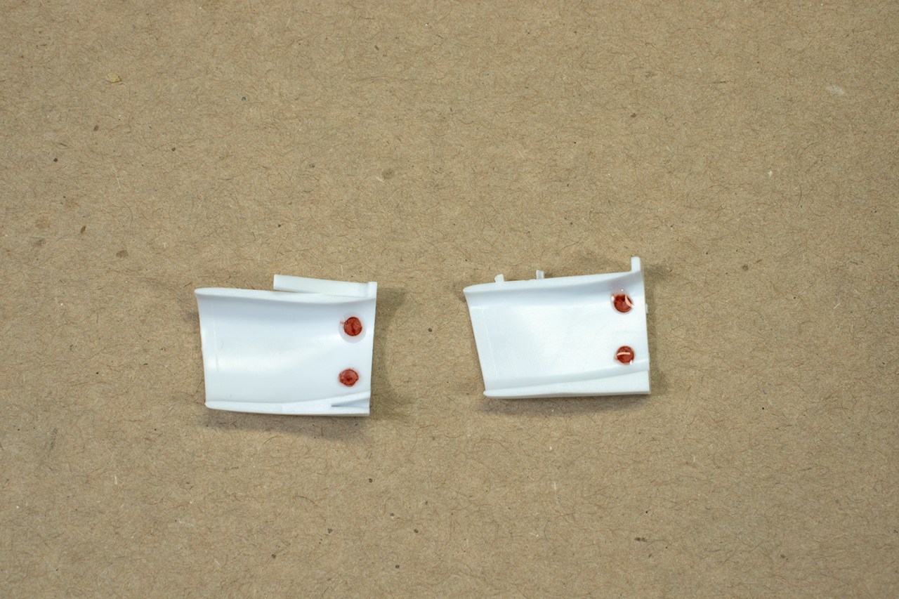 Eventually I worked it all out with more of the CA/powder mix on both the inside and the outside of the intakes. It took forever to get the insides even close to smooth (and they were not perfect when I was done), and my usual method of grabbing a small piece of sanding sponge in reverse action tweezers was hampered by the intakes being both small and curvy.