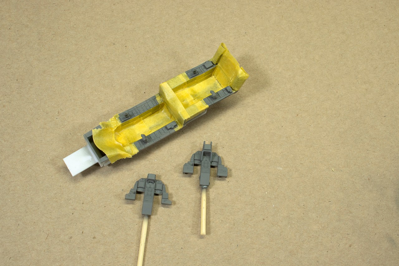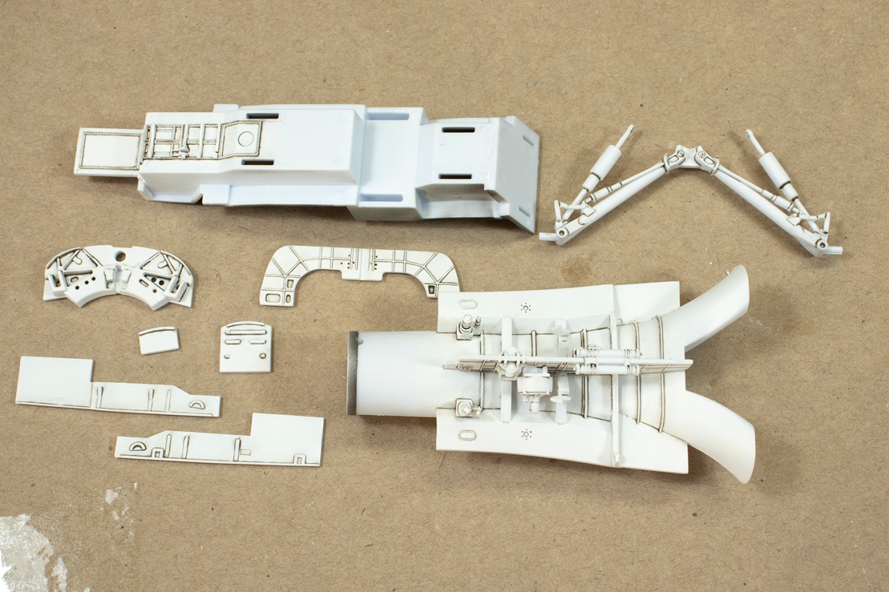 The final white finish is a mixture of layers of Mr Color 1 and 316, the latter being warmer in tone. I thinned this about 80% with Mr Rapid Thinner (so I could spray more coats more rapidly) and set about toning down the wash. Knowing when to stop was a challenge, and I’m not sure I got it right, but when the recessed detail was only just distinguishable from the surrounding panels, I stopped. Overall, I think this was a pretty effective way of subtly highlighting the detail, but you’ll have to be the final judge!