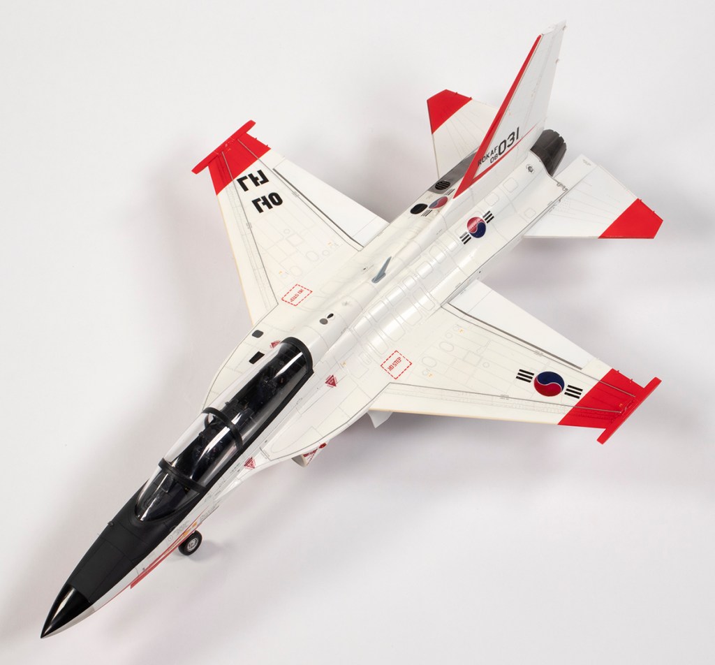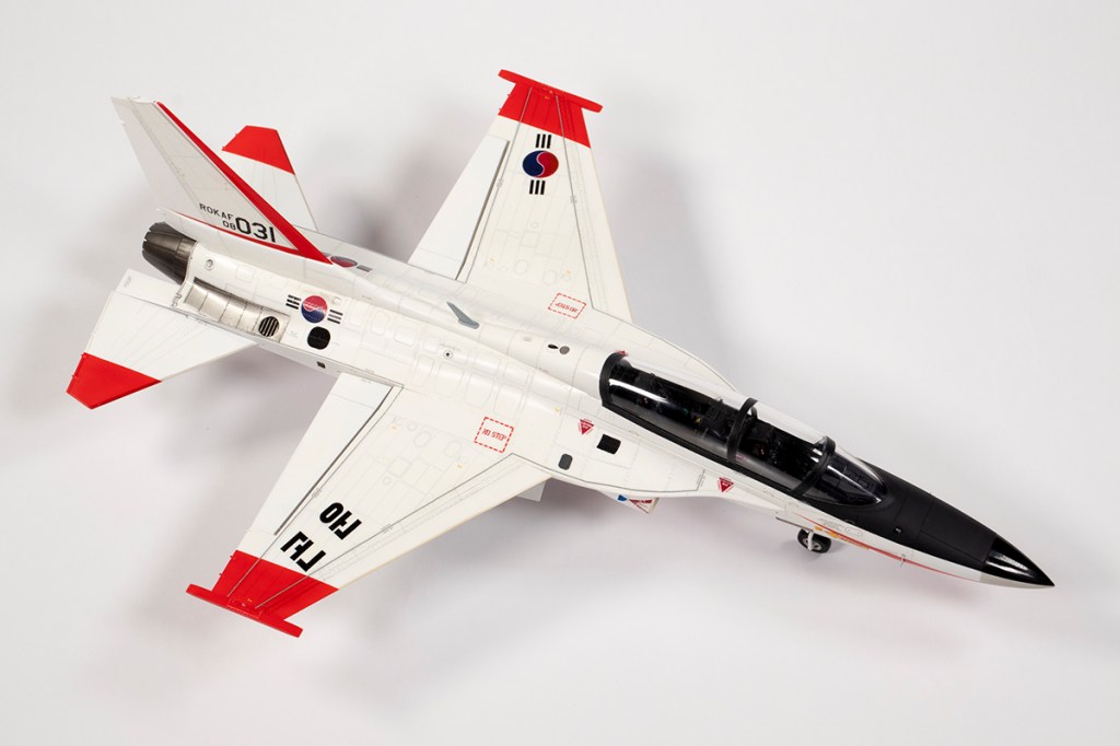 Number Four in my little ‘F-16 and children’ series is this kit from Academy of the Korean Aerospace Industries T-50 Golden Eagle supersonic trainer. Designed in cooperation with Lockheed Martin, its Fighting Falcon heritage is obvious from the wings, tail surfaces and undercarriage, but it departs in some interesting areas, such as the twin intakes.