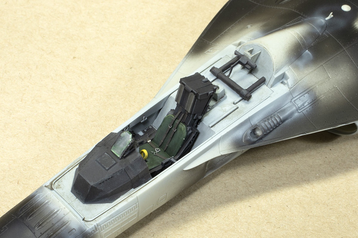 There’s a circular kit piece on the upper fuselage. I followed AFV Club’s instruction to paint it white, but I think it should be a light. There’s another pale-coloured circular feature which AFV Club neglected to model, so I simply scribed it in and painted it an off-white colour.
