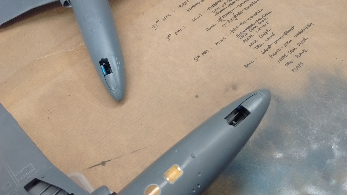 The front nose wheel doors don’t fit very well. I used super glue to fill the join and then gently rescribed it back again using a needle in a pin vise and Tamiya’s new white vinyl masking tape as a guide.