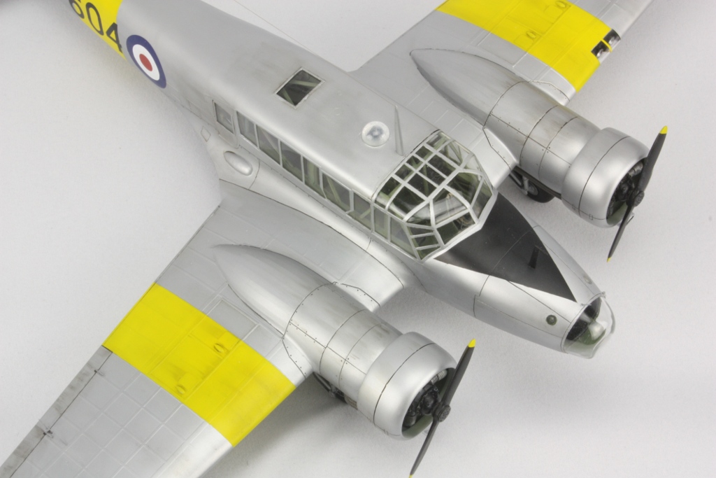 The wings themselves are a good fit and fit well, via a butt joint, to the fuselage. There was a small step that needed sanding away (and unfortunately necessitated removal of some of that surface ‘detail’) and then the join line was restored with a needle and scriber. The tailplanes were similarly uneventful except for the fact I fitted the port one at a crazy angle and didn’t notice until it was too late. I wasn’t about to break it off and start again, so at this point I had an Anson with a messed up canopy and wonky tailplane…my enthusiasm was beginning to wane as the mistakes began to mount.
