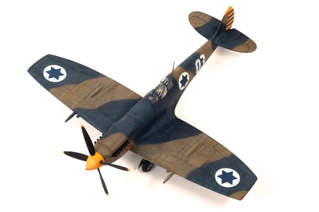 To make mine stand out a bit, and fit within my collection of post-war military aircraft, I decided to make mine in Israeli markings; although the Czechoslovakian markings the kit came with would also have worked, that scheme was just a tad dull. Much better, in my opinion, to have something finished in the unusual combination of dark blue and brown with a bright yellow tail and spinner. I purchased fündekals ‘Spitfires of the Israeli Air Force’ set, which was nicely printed but only had instructions online. There are lots of interesting and colourful options provided, although in the end I would only use a single decal from the sheet.
