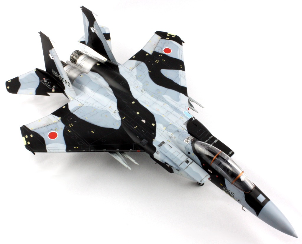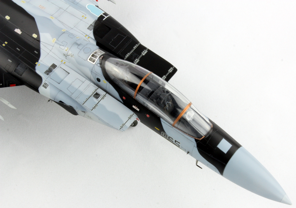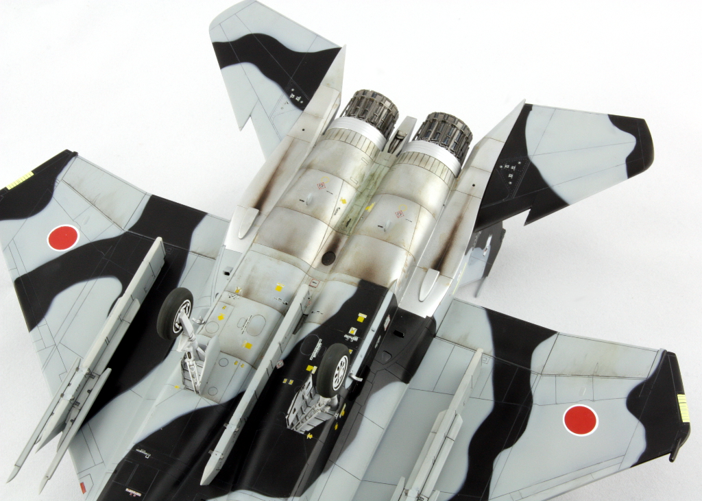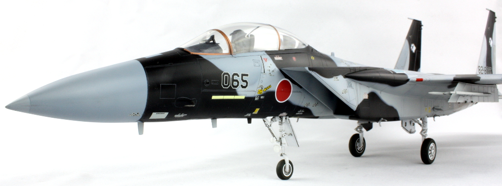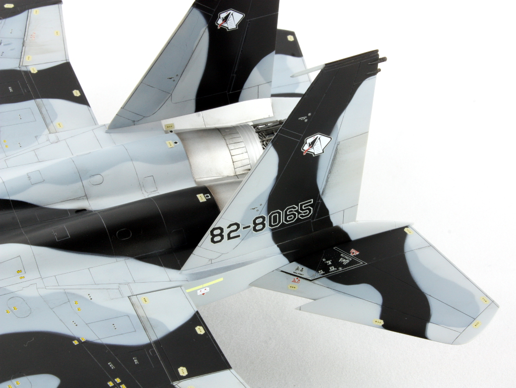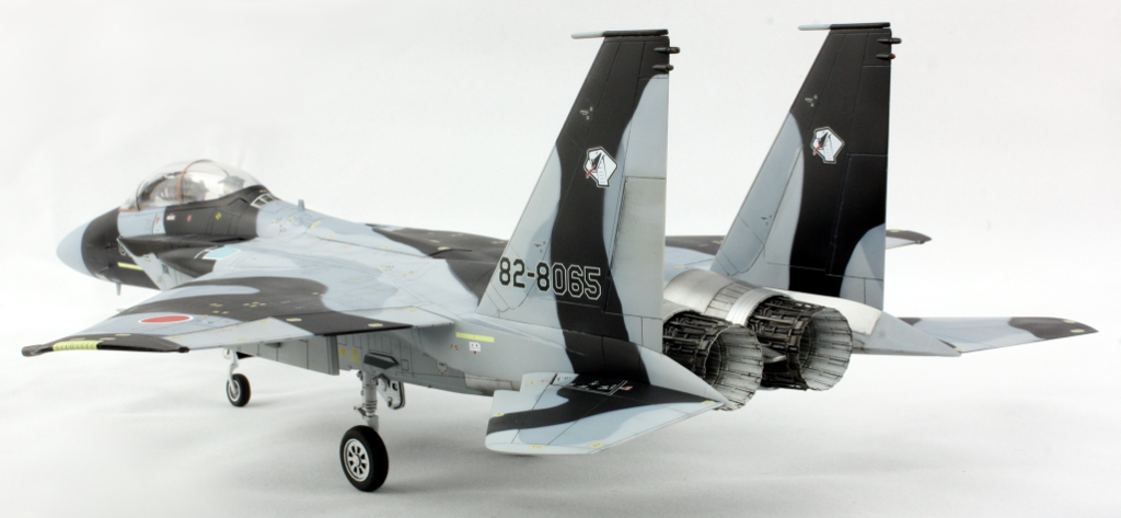 Some internet searching turned up four good photos of 065 in this scheme from 2001, although I only used three (for some reason I forgot about the fourth until after the model was completed, which is a shame as it would have helped with the upper demarcation quite a lot). These pictures were mainly obtained from www.f-15j.com, which is an is an excellent resource. What became clear was that the Two Bobs instructions were not quite right; in particular there were differences for the black camouflage pattern. I tried to follow the photos reasonably closely, but was left to go with the Two Bobs interpretation for the underside and in a few other places.