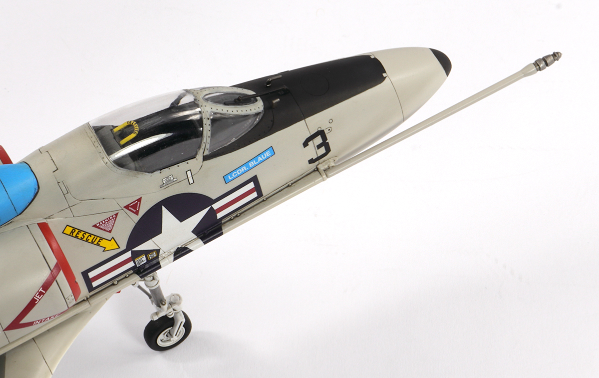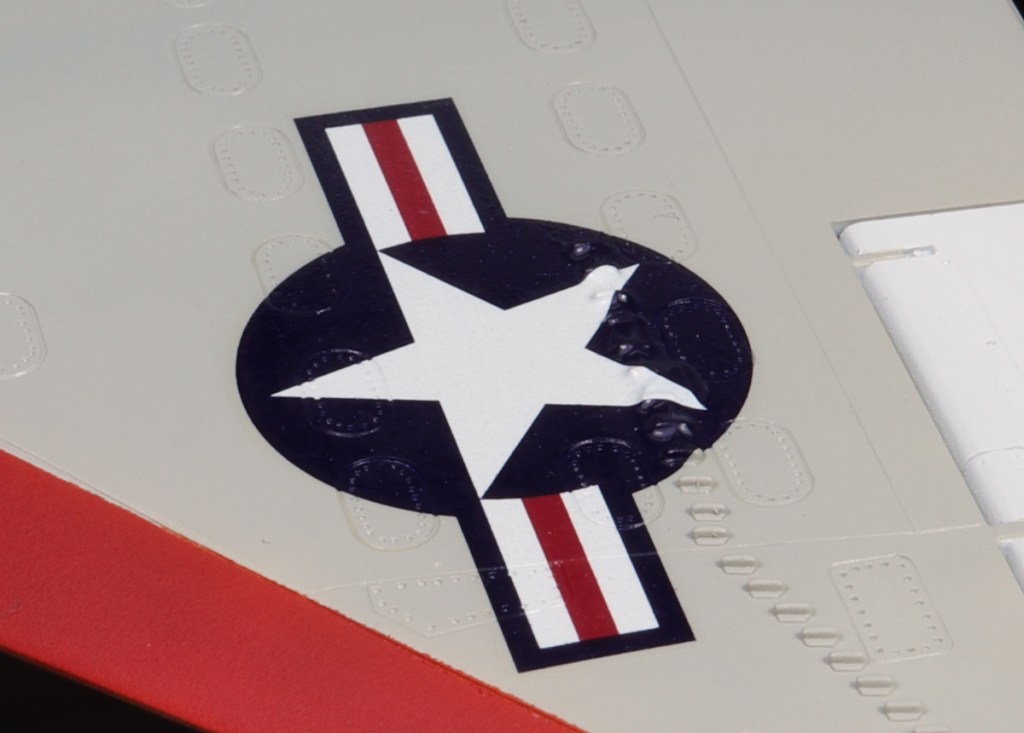 The national insignia on the starboard side is shaped to fit over the refuelling pipe. This was still a challenge to fit owing to the stiffness of the decals, but in the end the decal conformed very well.