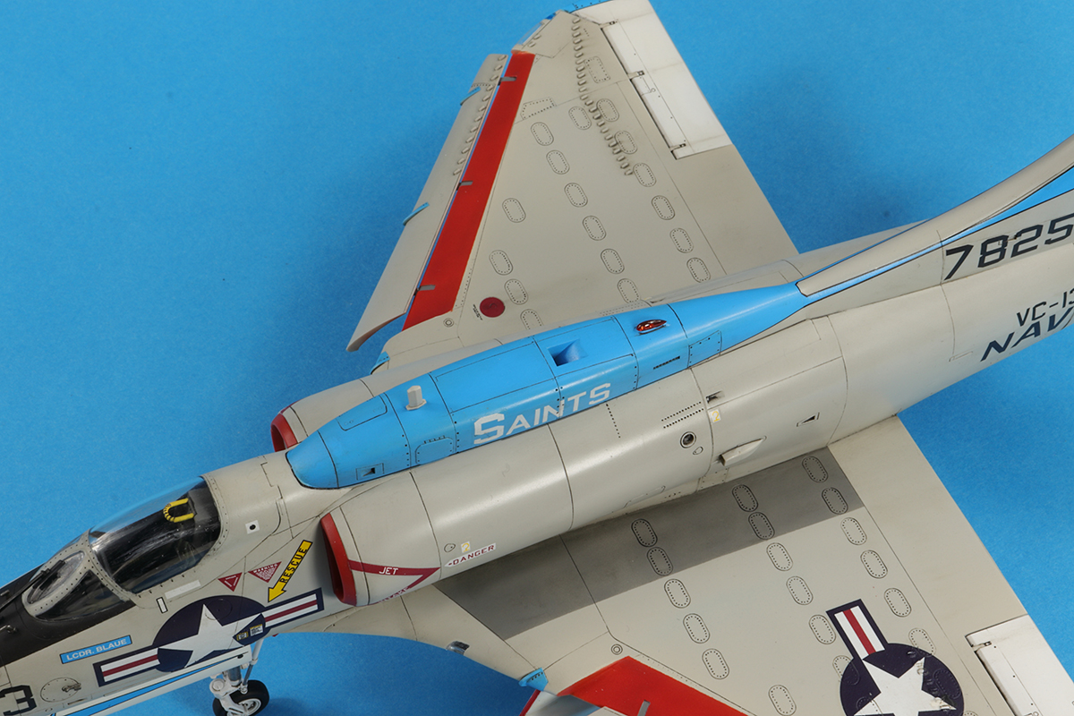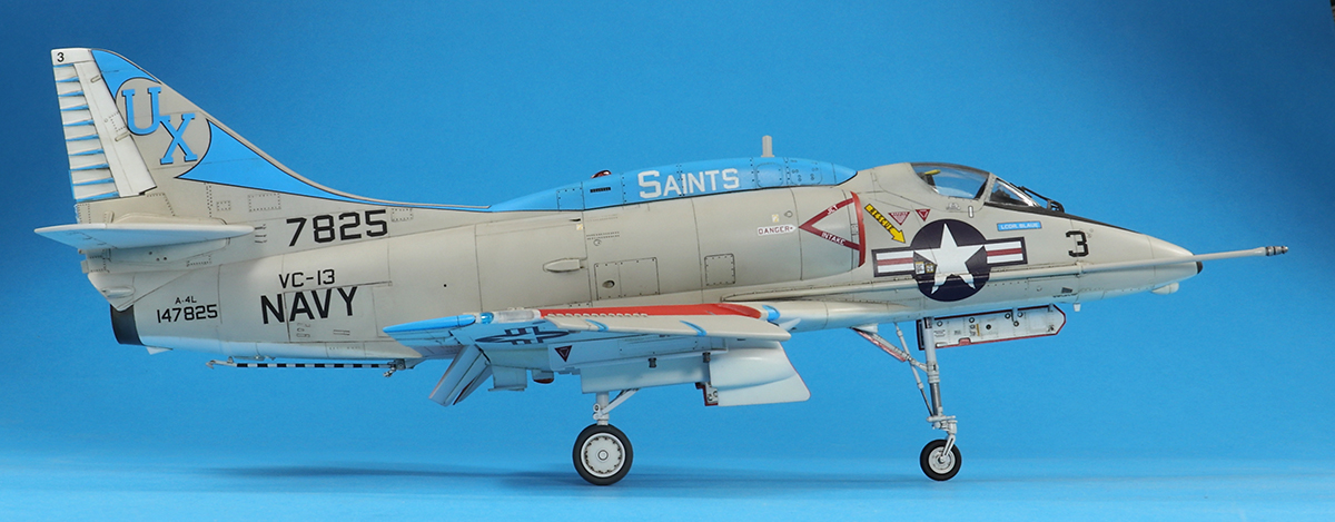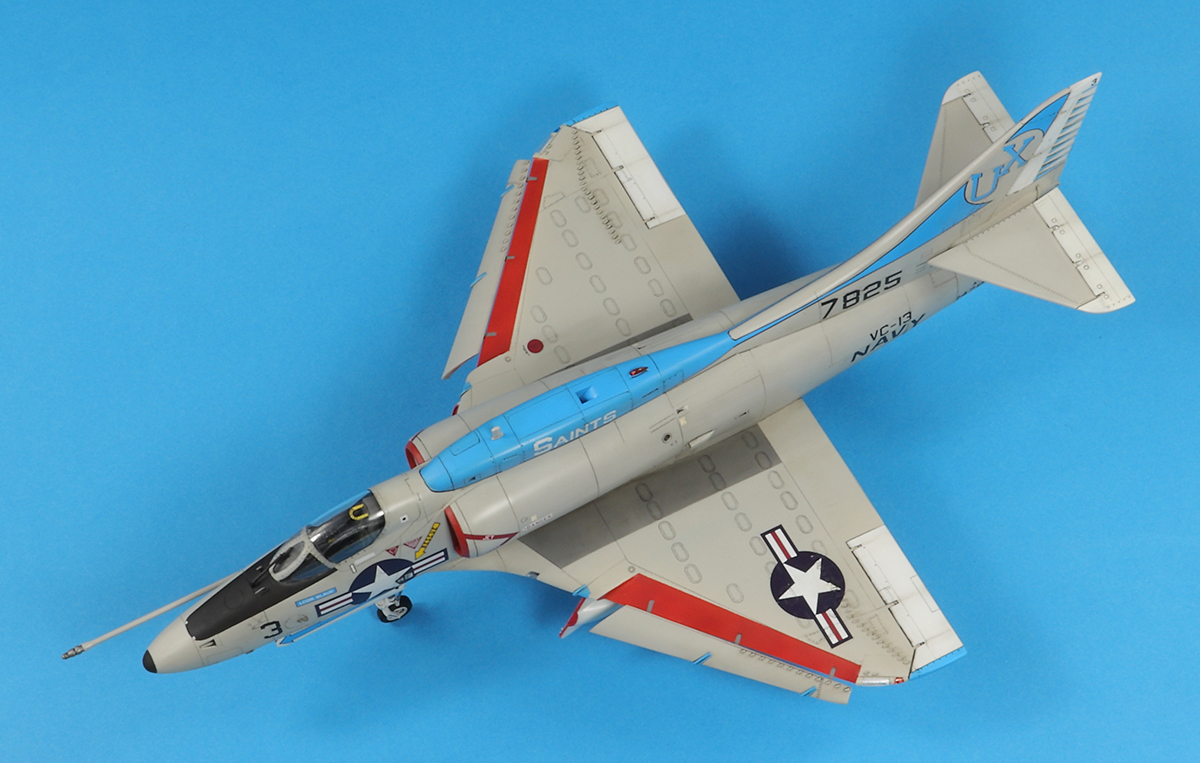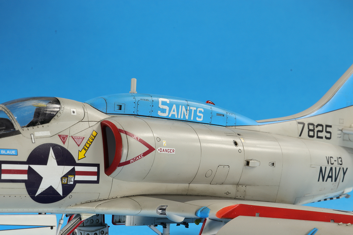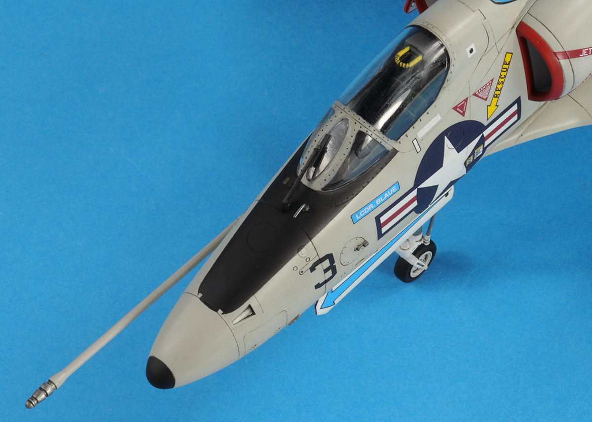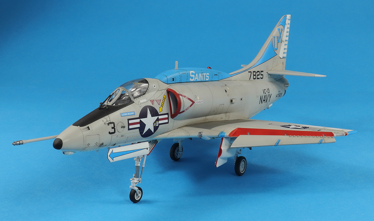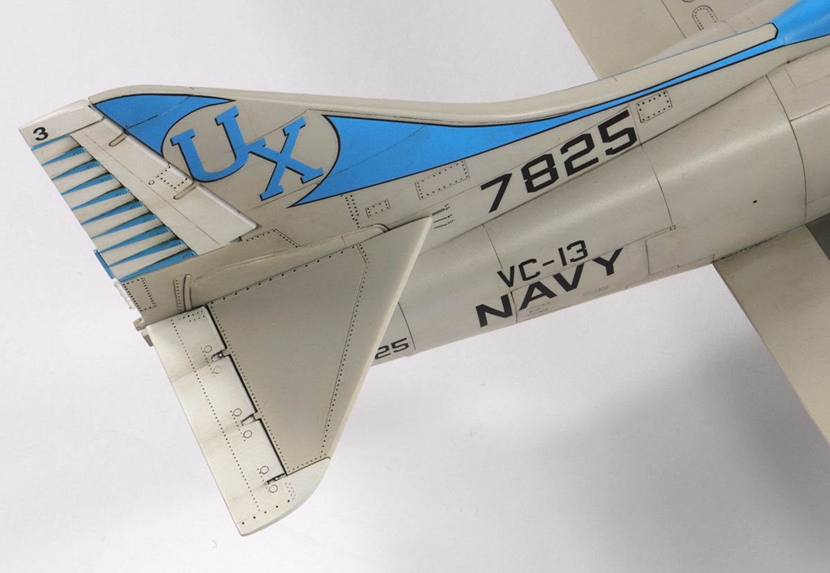 The boxing I had contained two very colourful schemes for US Navy A-4Ls, the first of which was to mark the Bicentennial anniversary of the USA. I have an aversion to Bicentennial markings (as I do to most special paint jobs) and was more attracted to the second scheme with its striking blue hump and trim. I found three good photos of this airframe on the internet (one is on the Detail & Scale website) and fortunately they were all from different angles. Interestingly, one shows the leading edge slats up.