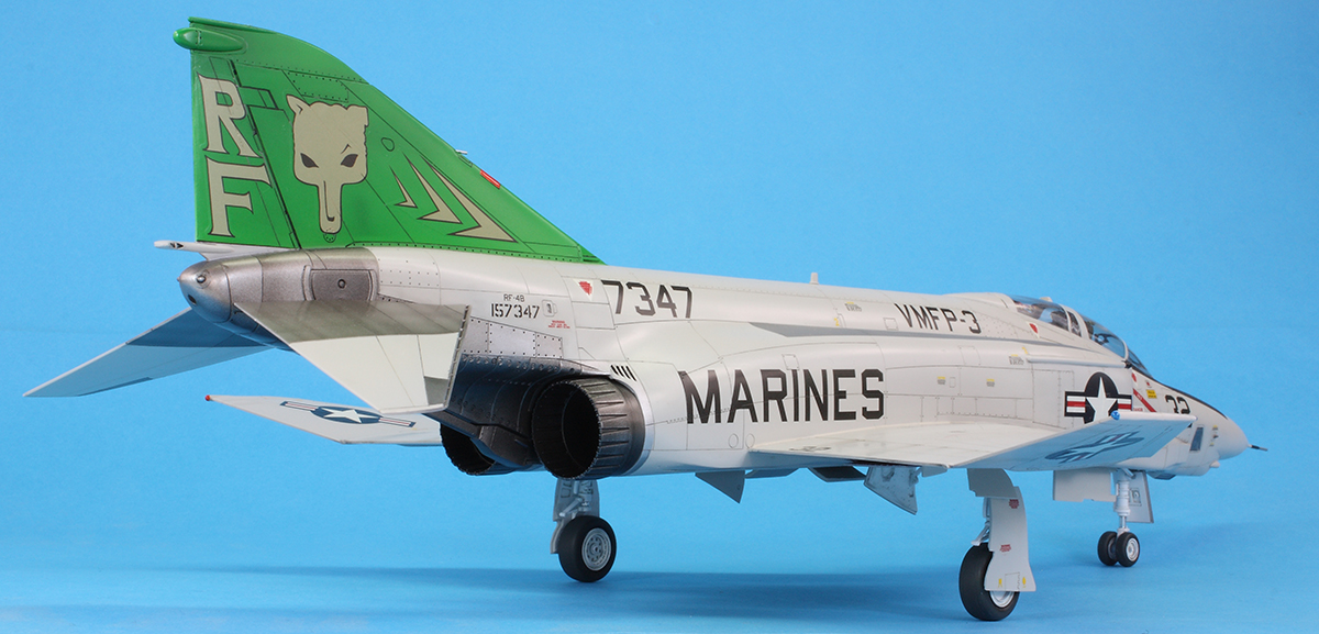 Hasegawa took the opportunity to improve on their previous Phantoms, but it’s not all good. They tooled some much nicer J79-8 engines, but promptly tell you not to use them and use the old, simple J79-10 exhausts instead. If you’re making the VMPF-3 option with the green tail provided in the kit DON’T DO THIS! There are quite a few photos of 7347 around on the web and they clearly show that this RF-4B retained the -8 engines until at least 1984 when it was in a low-viz grey scheme.