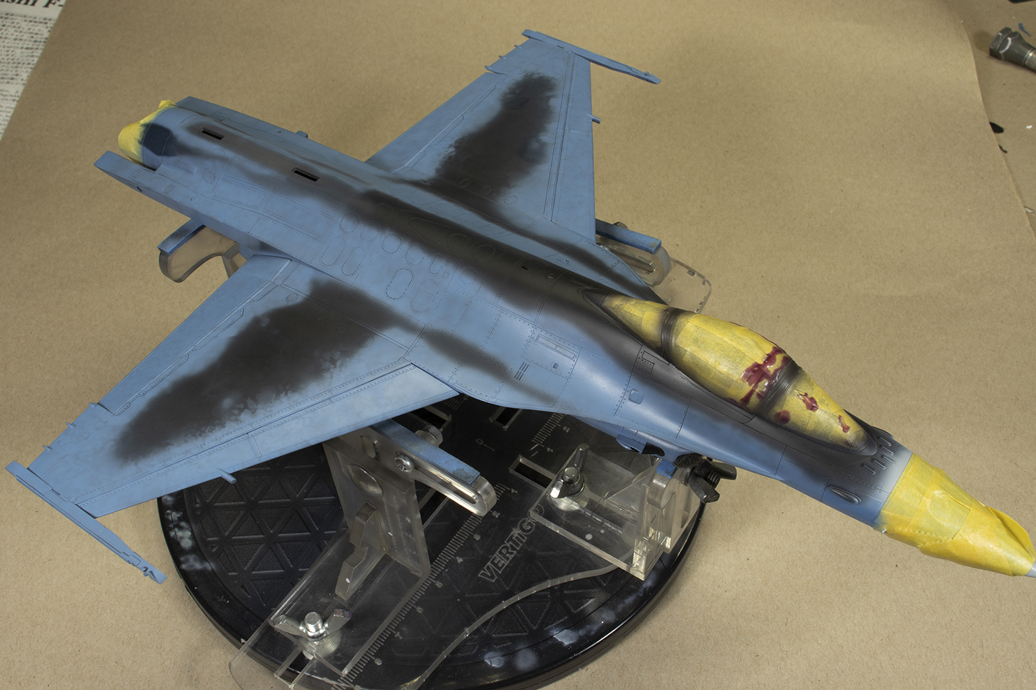 Next was some weathering. Many people love this stage of modelling; I don’t. I want it done and out of the way as soon as possible. I reasoned that as this was a specially painted airframe, it would be pretty clean, unlike many examples of quite dirty F-2As that I found online.