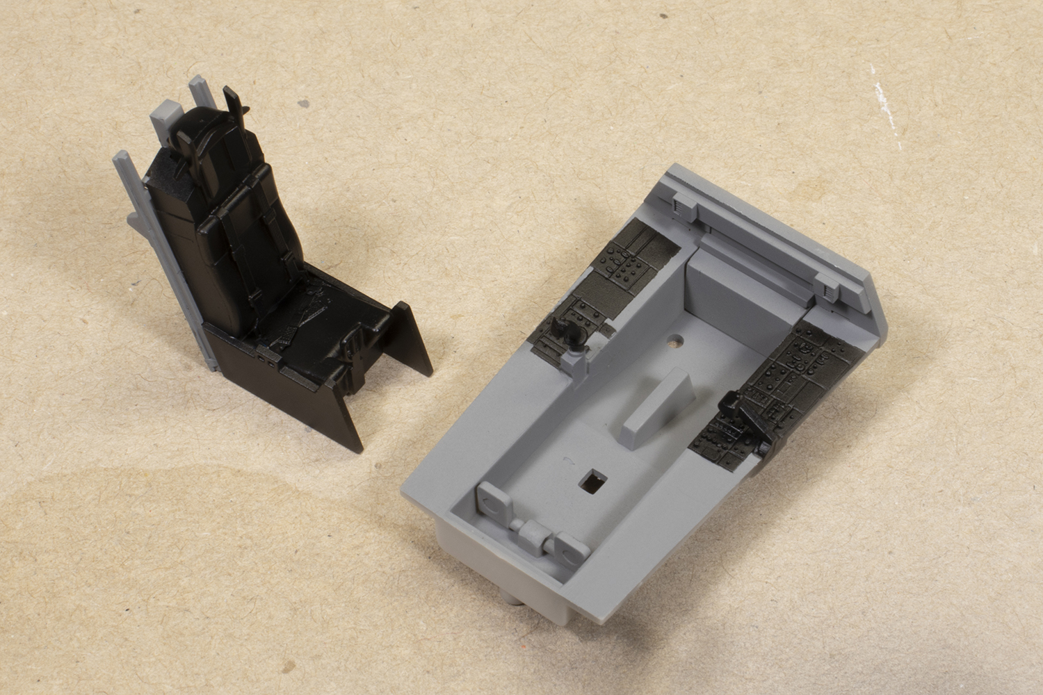 I tried to do some weathering with grey shades of oil paint on the seat and cockpit coaming, but it all ended up a rather indistinct mess. I have a plan next time I’m modelling a black ejection seat for a sharper finish, but since I hate redoing stuff (it slows you down!) I pressed on with what I had.