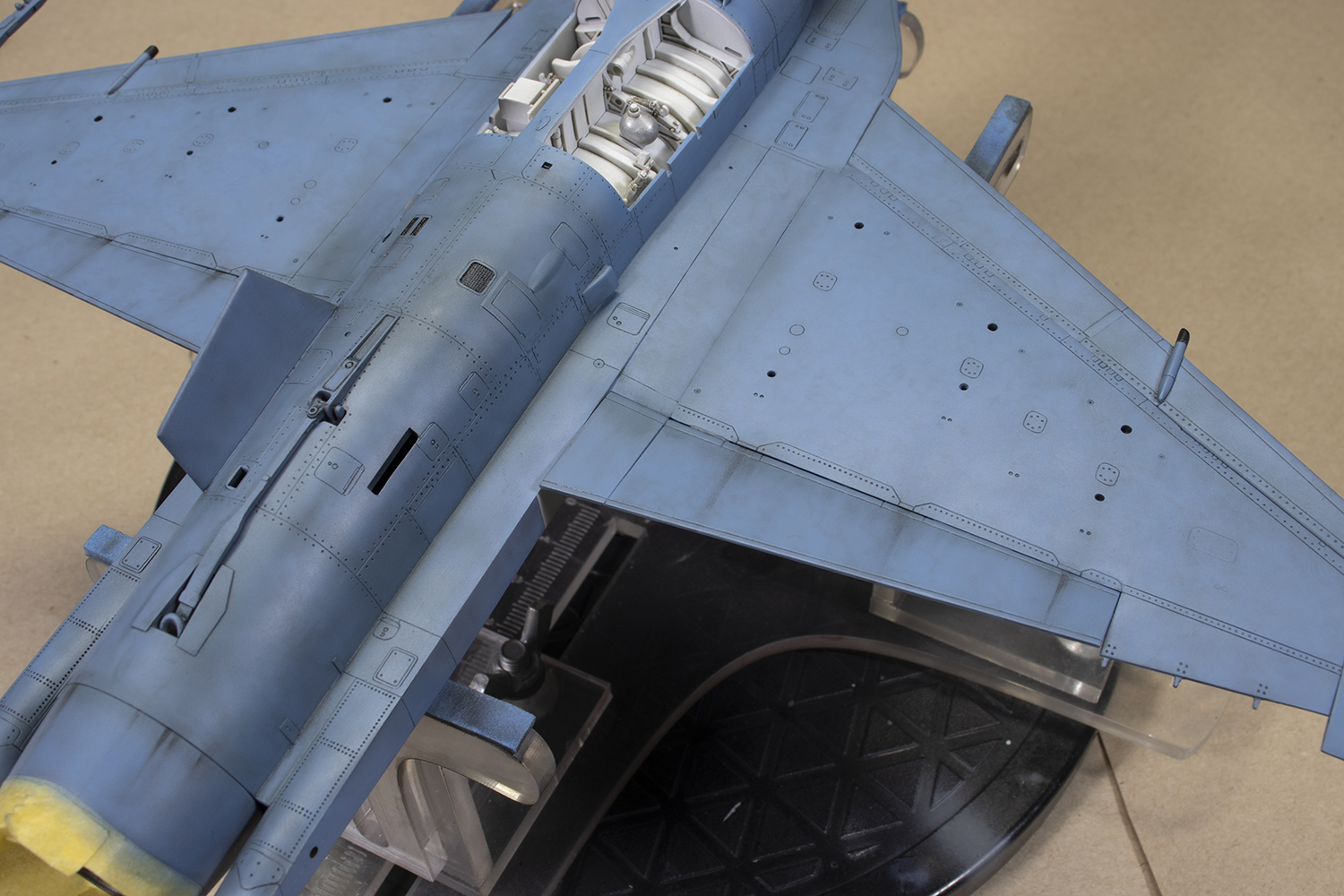 Nevertheless, the build sequence of this kit is very similar to the F-16 and thus I had a pretty good idea of how I was going to build the model before I started. It used to be that I had a very rigid sequence when making kits: stick the parts together, get rid of all the seams, do the canopy, prime, paint, decal, weather, finish. In recent years one of the modelling revolutions I’ve experienced is to blur the boundaries of these stages and overlap them as appropriate to make for a better and more efficient finish. You’ll see what I mean in a minute when it comes to the intake.