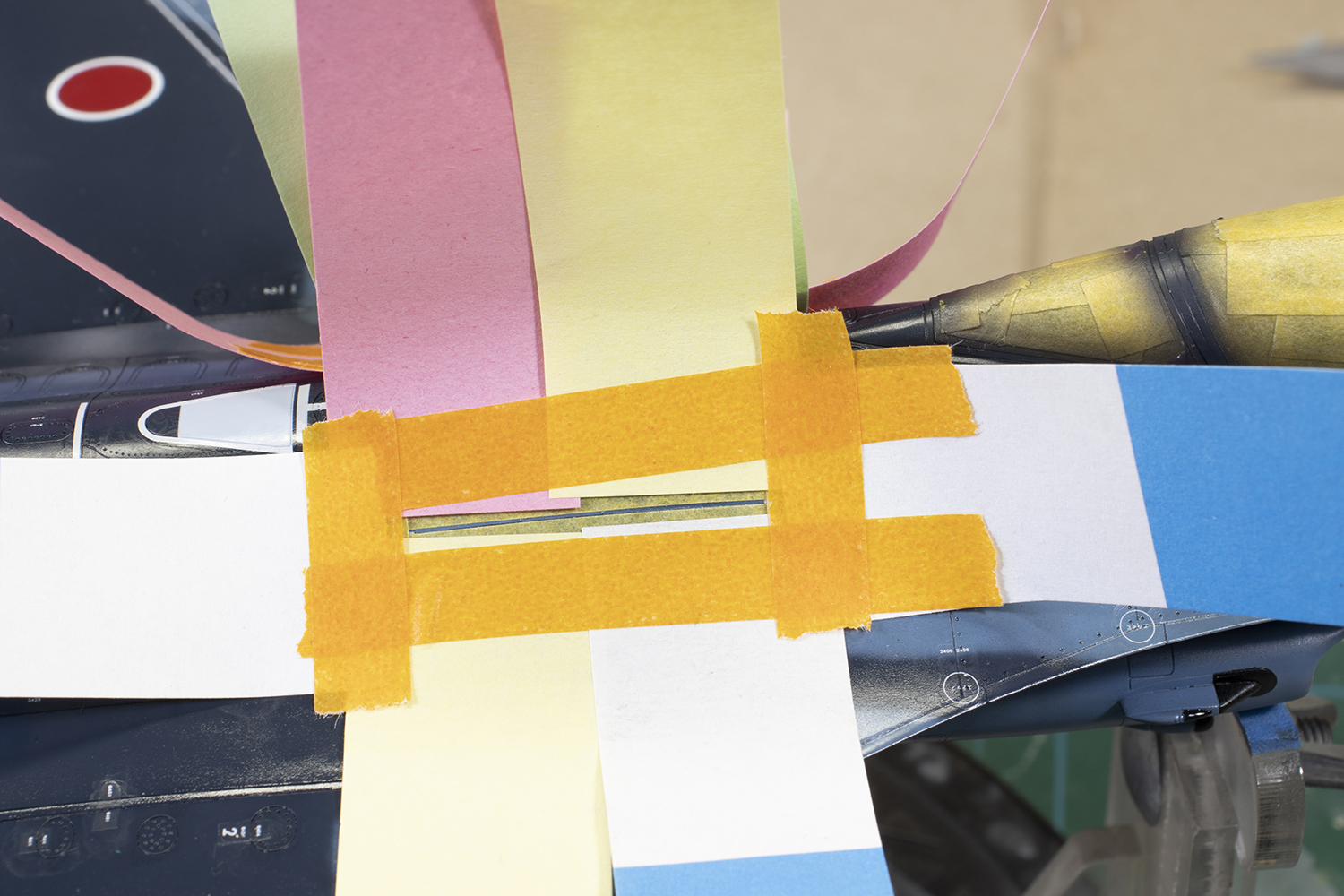 Before I could paint the rest of the airframe, I needed to fit the canopy. I messed up here and misaligned the joint between the windscreen and the opening section, which is a shame. The fit is actually rather good, but I decided the shut lines were too wide, and so I filled them with super glue and rescribed them and the hinges using a needle in a pin vise. This resulted in much neater panel lines.