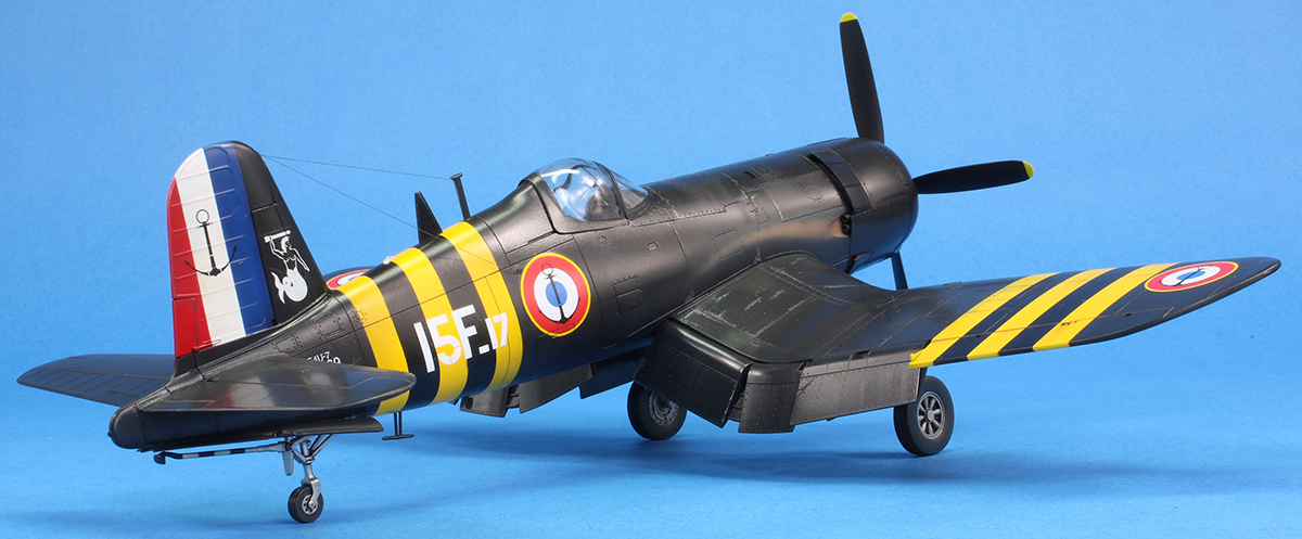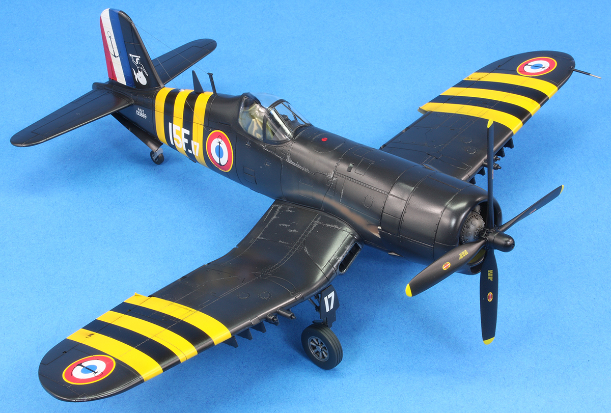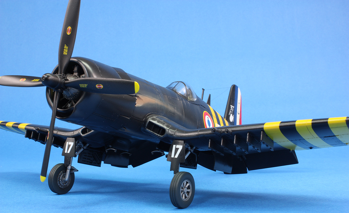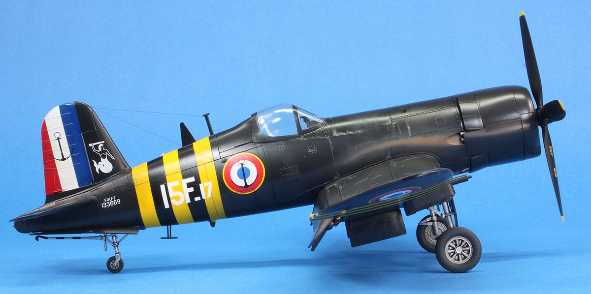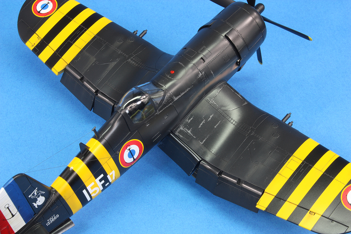 I could find no photos of 15F.17, so had no photographic evidence to go on. Both Hasegawa and Sky Models indicate the propeller hub was white, but I could not find any photos of 15F Corsairs during Suez with a white hub and so left it black. The most useful photos I found were from these websites: