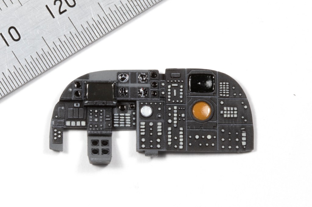 The cockpit basics are airbrushed and then the panel details all painstakingly picked out by brush with acrylic paint – magnification essential. I added a few Airscale instrument decals, but even the smallest I had were too big for most of the dials. The seat cushions were also brush painted with various Lifecolor shades of Olive Drab.