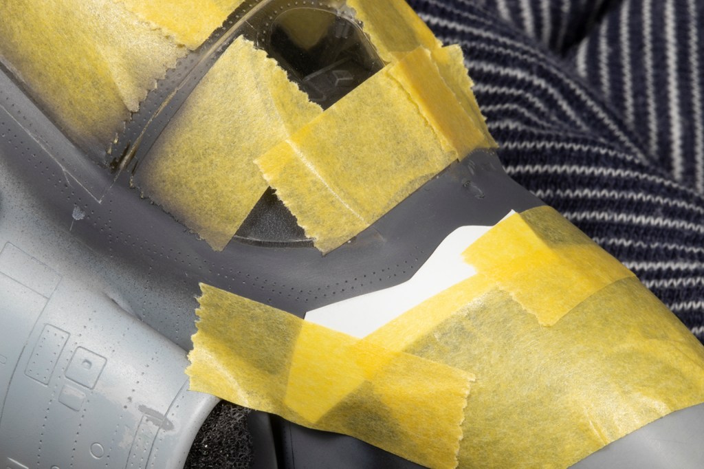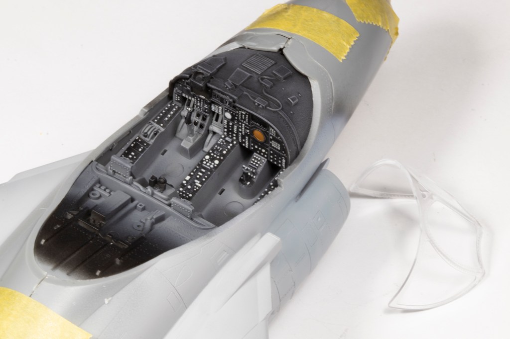 The main canopy and the windscreen don’t unite very well, and to get them to close flush I had to sand back the front of the sliding section to a slightly different angle. This was irritating as it means the front frame of the canopy no longer looks right, but it was the easiest way to get rid of the gap. Masking was courtesy of New Ware (and is highly recommended).