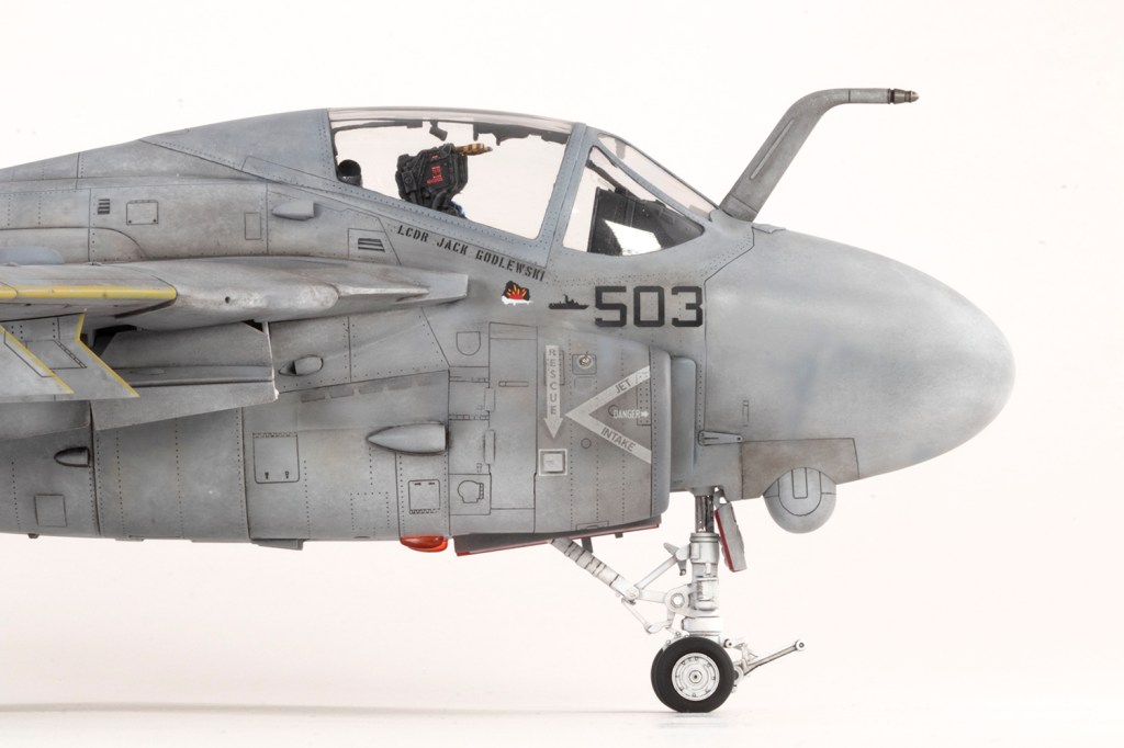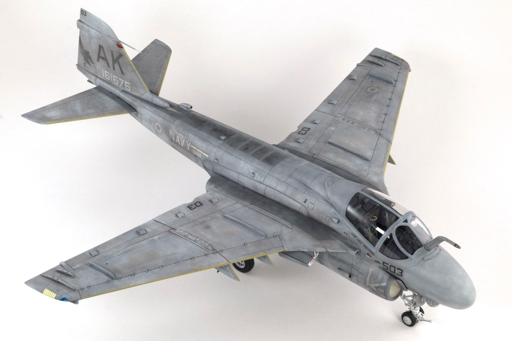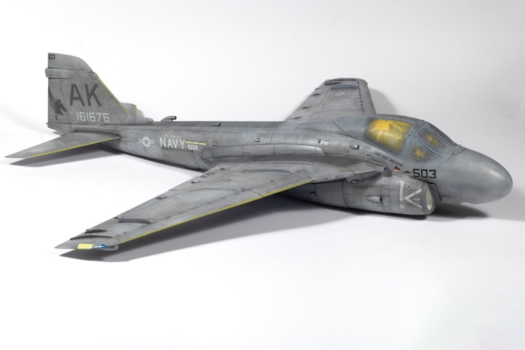 I immediately found a cheap Hobby Boss A-6E on eBay and purchased the Hypersonic upgrade parts I already had lined up for my A-6A: a resin fin tip, which corrected the kit’s shape, and some resin exhausts which are beautiful, but largely invisible. Decals would be from AOA for a line jet in the TPS scheme which took part in Operation El Dorado Canyon and bombed Libya in 1986.