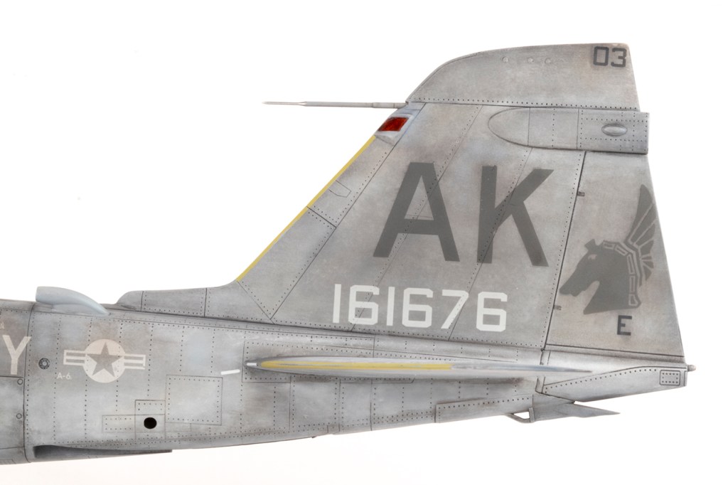 I couldn’t find this referenced in any book on the A-6 that I had, and was only alerted to the change by Mr Thomason’s blog. Once you start looking at photos of Intruders though, you can’t miss it. Essentially A-6As had the inner wing fence outboard of the inner pylon, but A-6Es had this wing fence inboard of the pylon. The change may not exactly have coincided with the introduction of the E model, so it’s worth checking your references. What I knew was that the kit was definitely wrong for what I was doing (as is the Revell kit also).