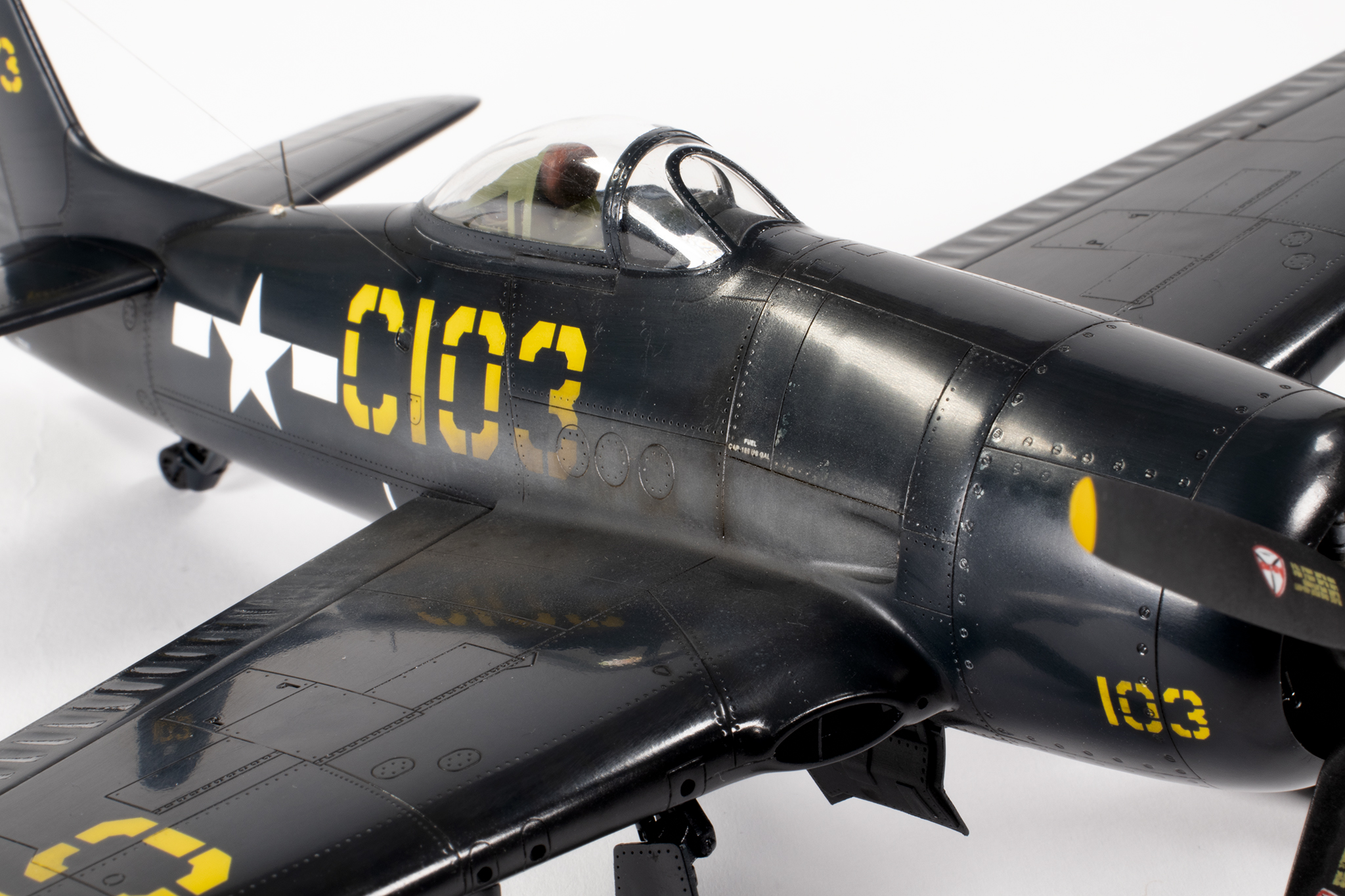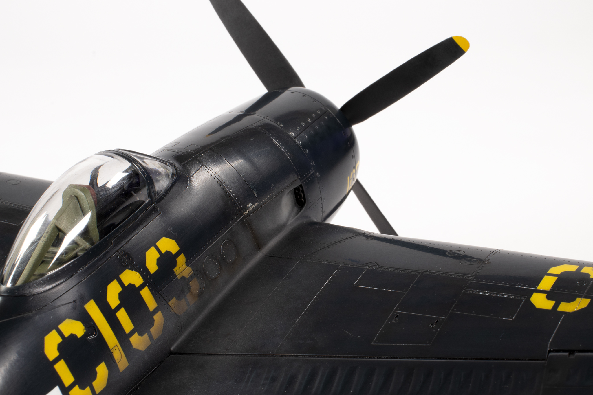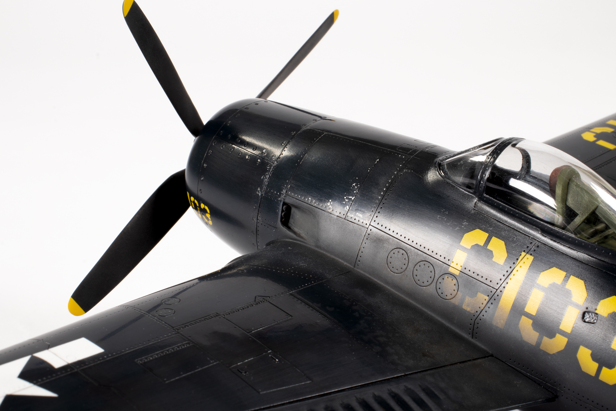 The prop blades had been airbrushed with Mr Color 137 Tire Black, and then mottled with black oil paint. Bearcat prop bosses could vary a lot in colour, but I left this one blue in the absence of any other information.