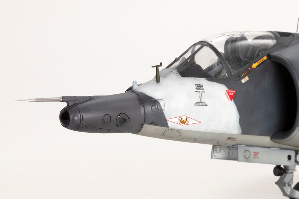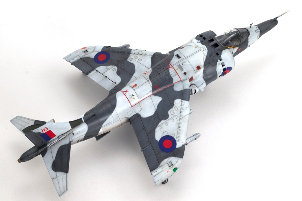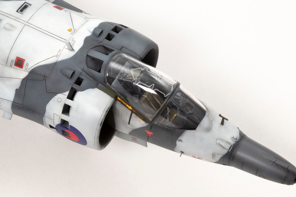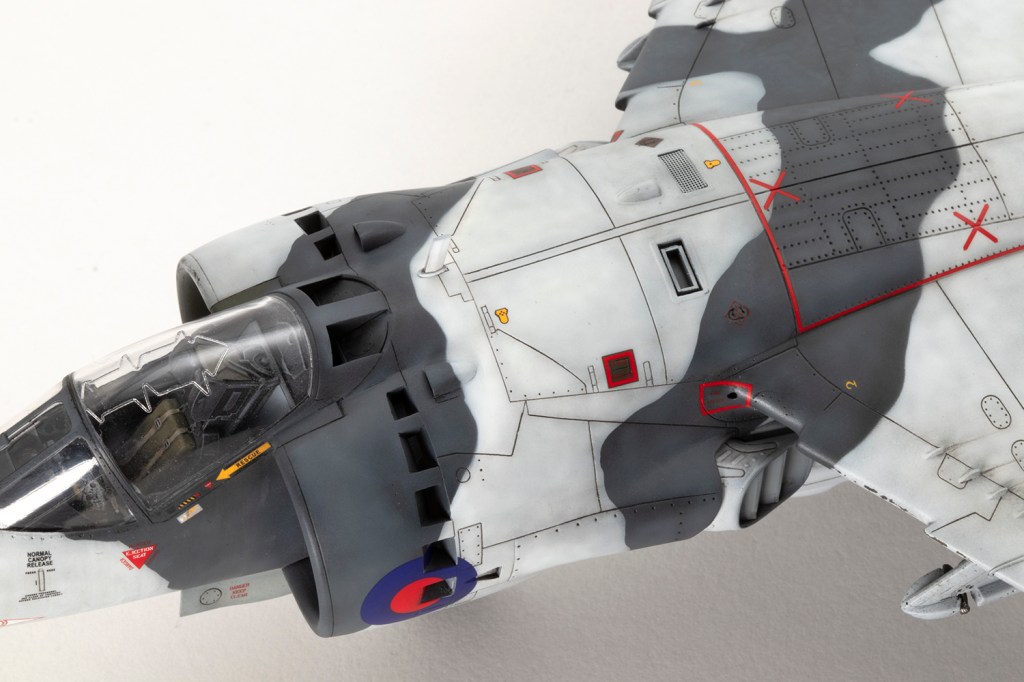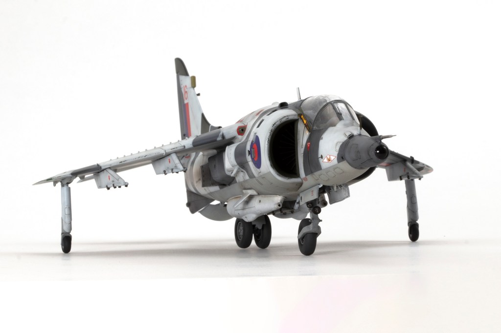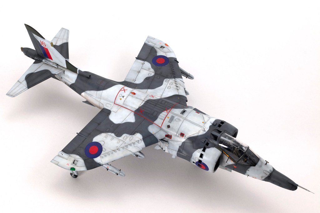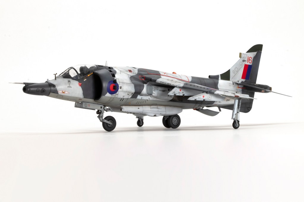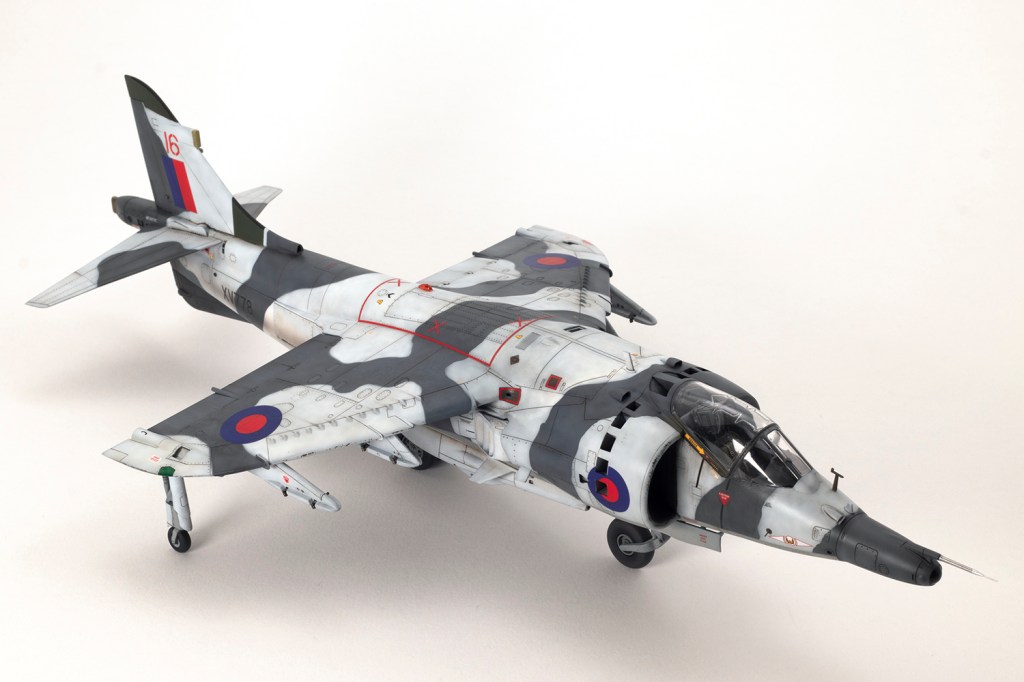 One of my vivid mental images from growing up in the 1980s, surrounded by models and posters of jets, is of first generation Harriers flying at low level over Norwegian snow in winter camouflage. I’m sure I had an Airfix kit in the white and grey scheme, and whilst I think the Snoopy-nosed GR.3 makes a rather pretty aeroplane an ugly one, when Kinetic released their kit back in 2020 I knew I’d be making it in this scheme.