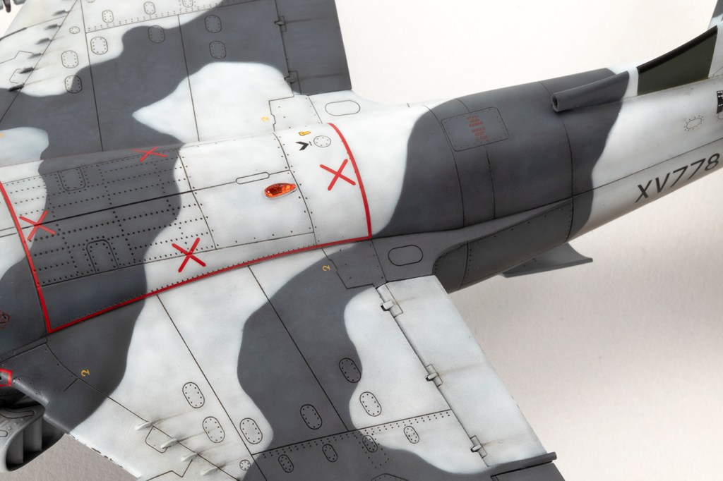 My last tip is to check the airbrake fits properly much earlier in the build. I didn’t, and I had to push the arms quite firmly into the slots. This fractured the plastic around the slots, right across the undercarriage doors. A lesson learned for next time, when I make the FA.2, T.2 and AV-8A.