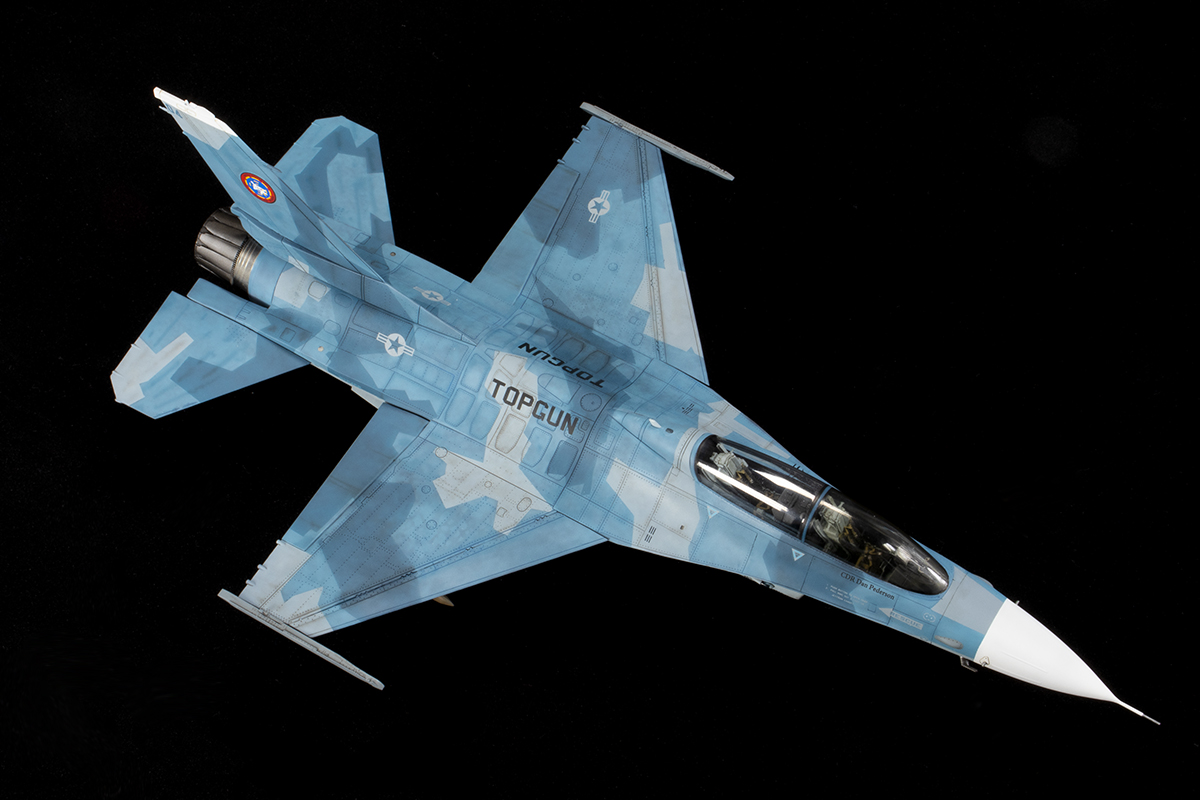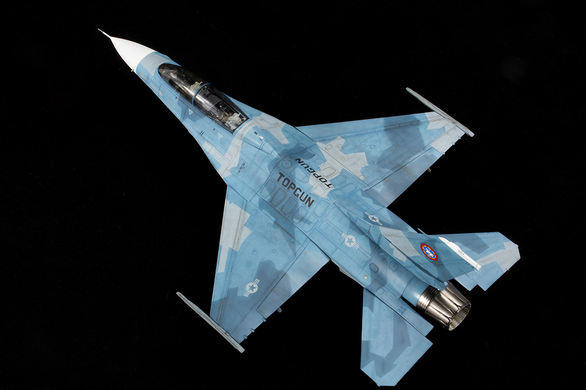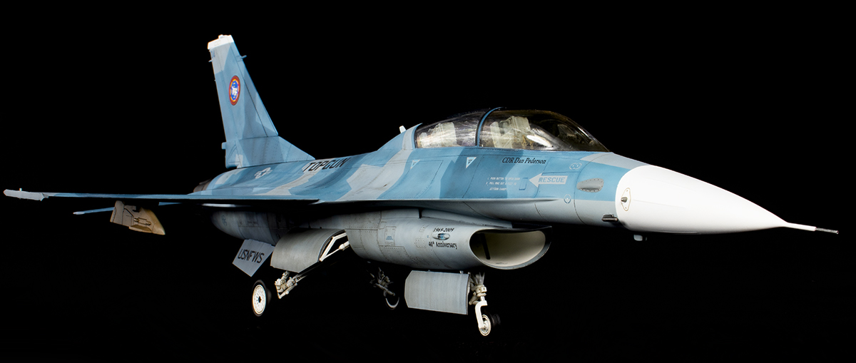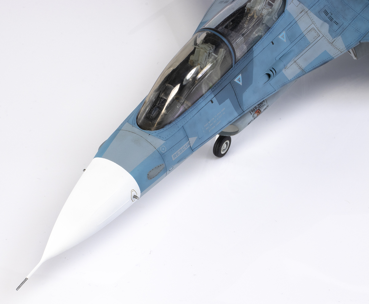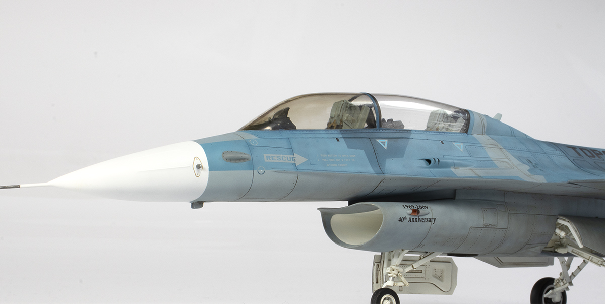 To be fair, whilst this was an unpleasant kit to make, it did get more interesting when it came to paint. The final scheme is very attractive and distracts me from the memories of actually having to put the plastic together. Whilst it was not much of a fun kit to build, the Kinetic kit has two main advantages over the Hasegawa kit, namely full intake trunking right up to the turbine blades and more detail in the main gear bay. But these, in my view, don’t make up for the poorer moulding quality and fit. I’ve built F-16s from Tamiya, Hasegawa and Kinetic, and the Kinetic does come in third in my opinion. The world is still waiting for a decent 1/48 F-16 kit for all the non-C/N variants.