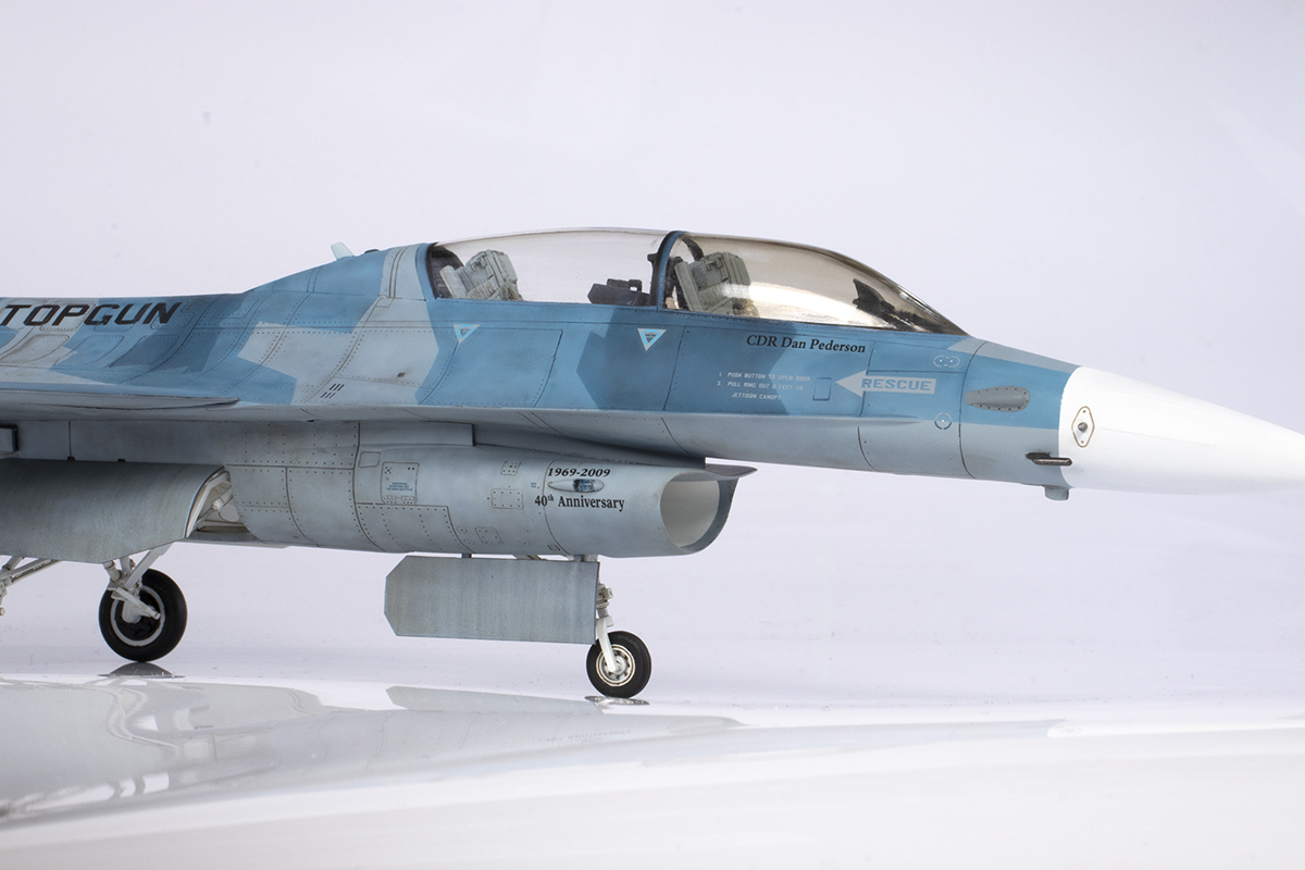 When it comes to the markings, there are few question marks. F-16B 920458 ’04’ is very well photographed and you can find lots of photos on the web. The kit markings are from 2009 and celebrate 40 years of TOPGUN (bizarrely noted as ’90th anniversary’ in the instructions). Most photos are from slightly later, with different markings, so if using photos as a reference, make sure they are from the correct time frame. I have found at least three very similar marking schemes that this particular airframe wore, all within a few years. The kit decals include large ’04’ markings which are unused and get you some of the way to modelling the other schemes.