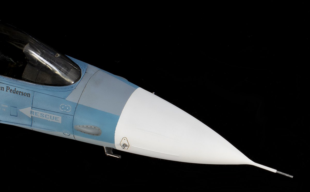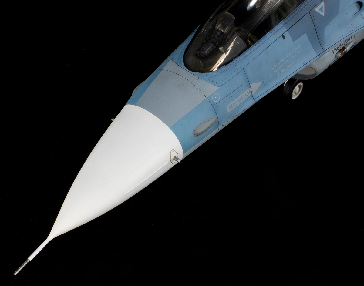 - Kinetic would have you fit the nose panel with the bird-slicer IFF aerials. Do not do this. (They helpfully point out that this part is for a Block 50 F-16, which of course, an A/B is not…) The correct part is elsewhere on the sprues.