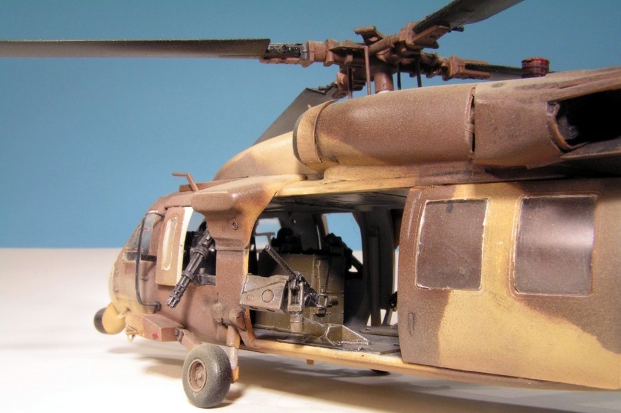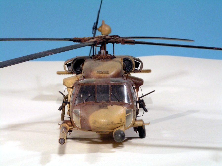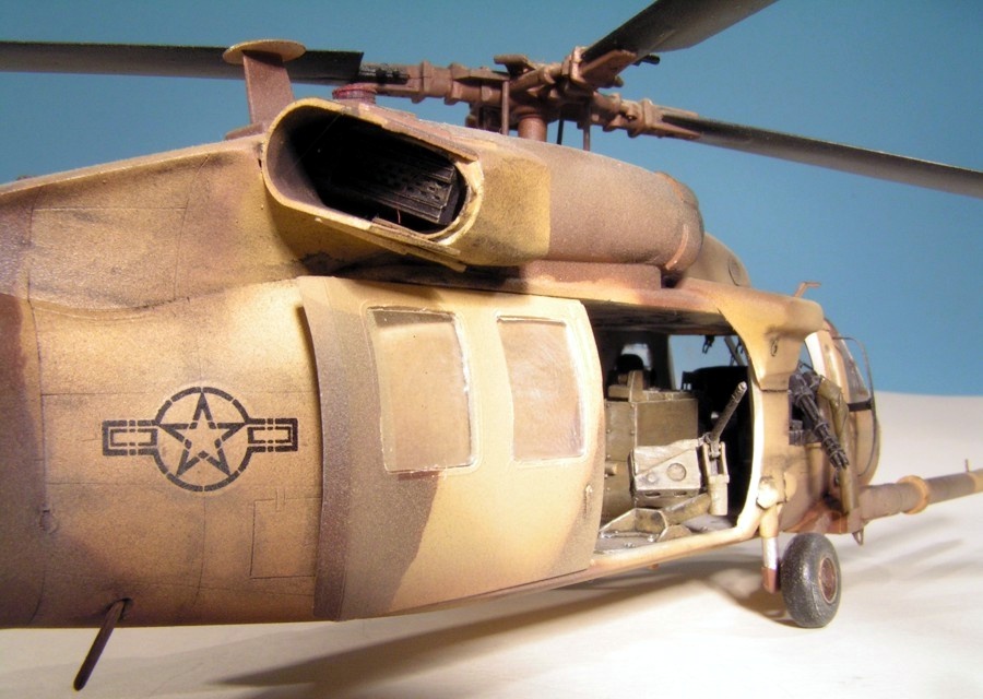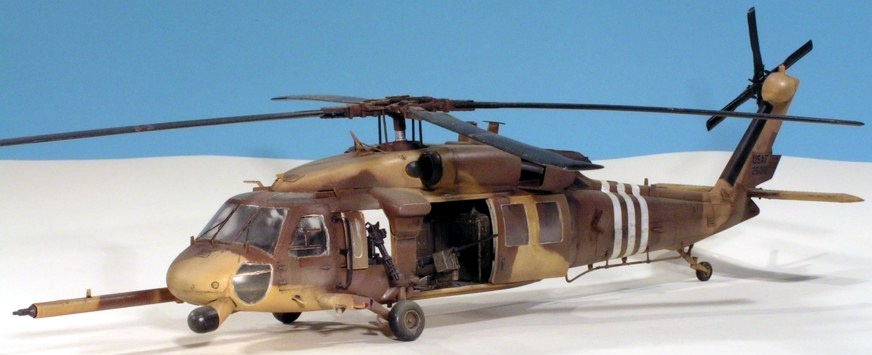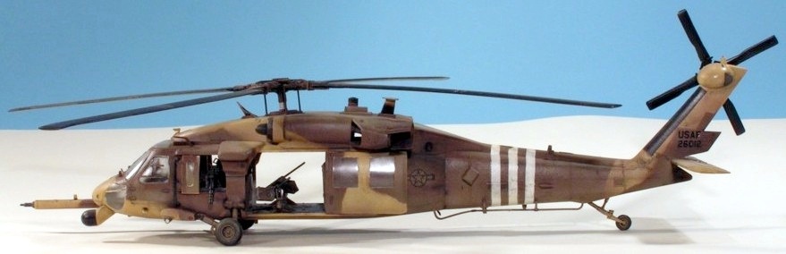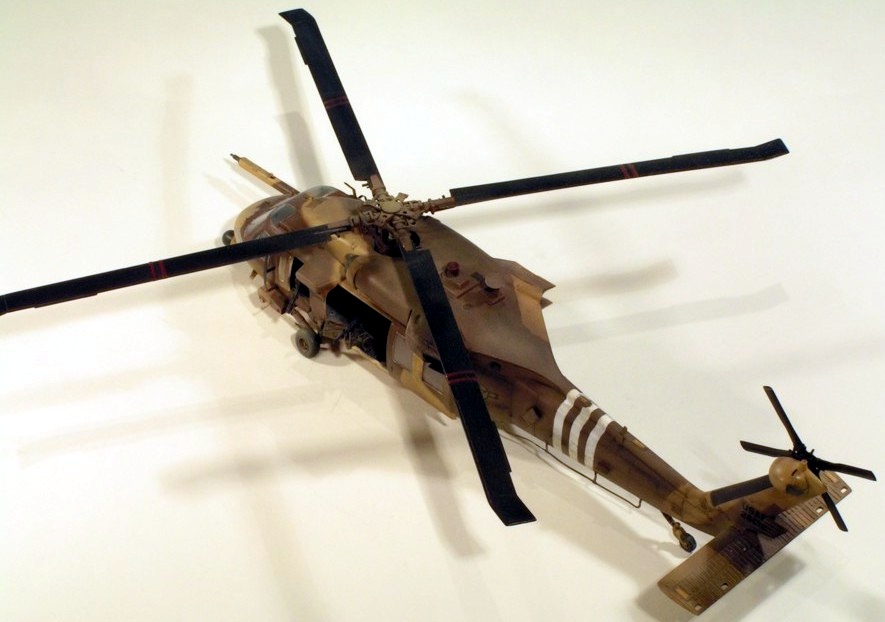 As their UH-60L was nice, I built the Academy MH-60G Pave Hawk. This time I added two Eduard photo-etch detail sets for the interior and exterior of the helicopter. These sets were very nice and provided details for the cockpit as well as antennae, grills, wipers, etc. The finish is Humbrol acrylics that looked about right. The kit decals were used, and they were fine. As with the UH-60L, I messed up the rotors — these are on upside-down. The kit provides a very nice base for further detailing.