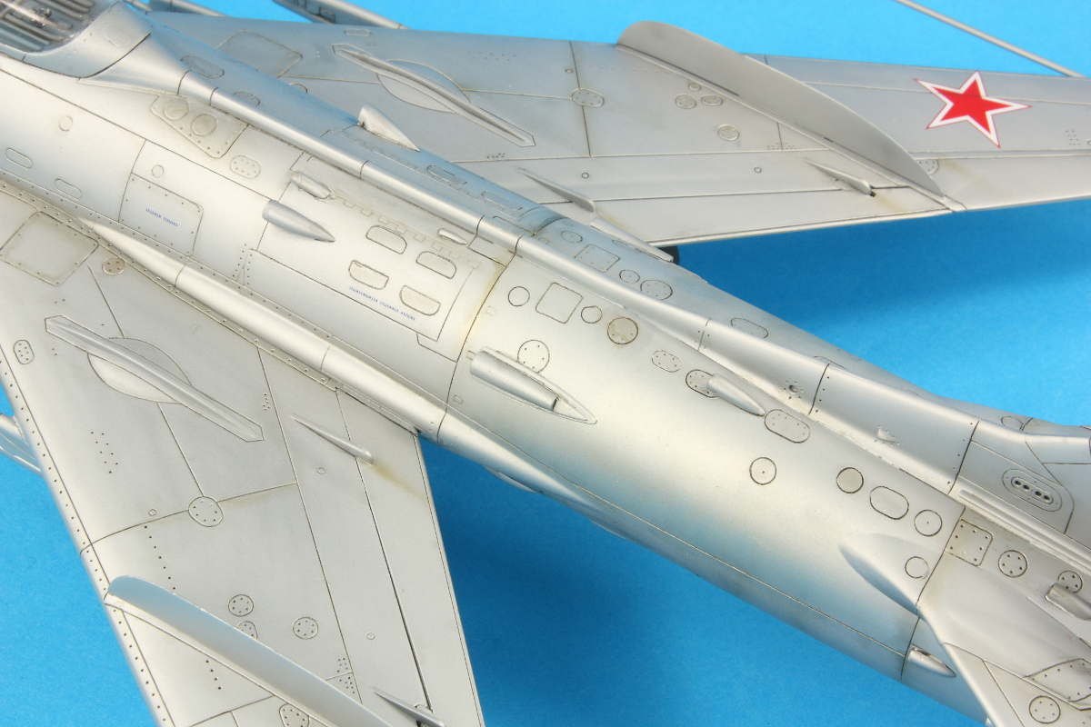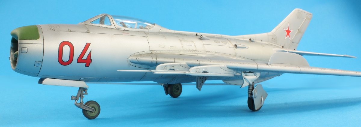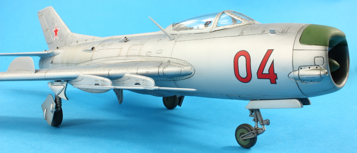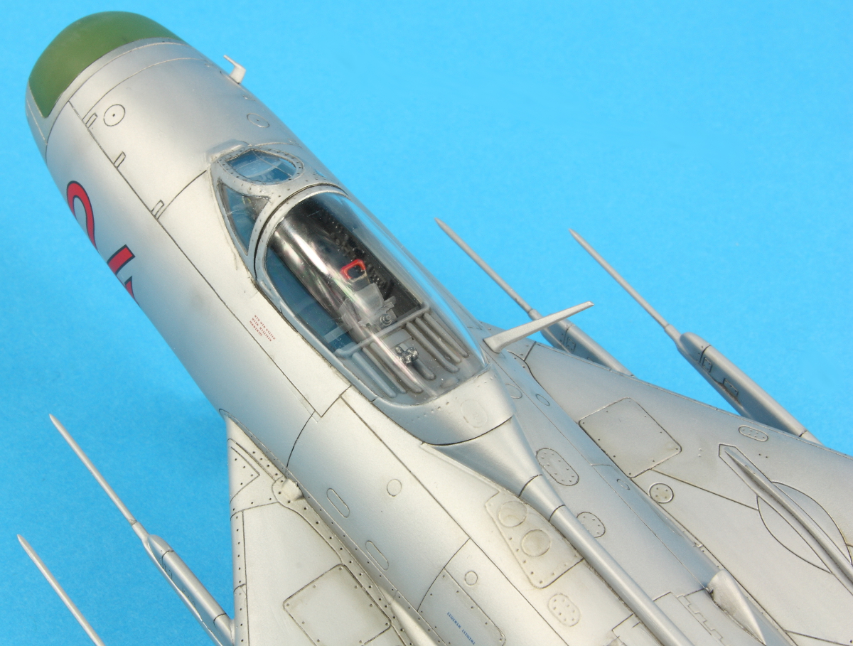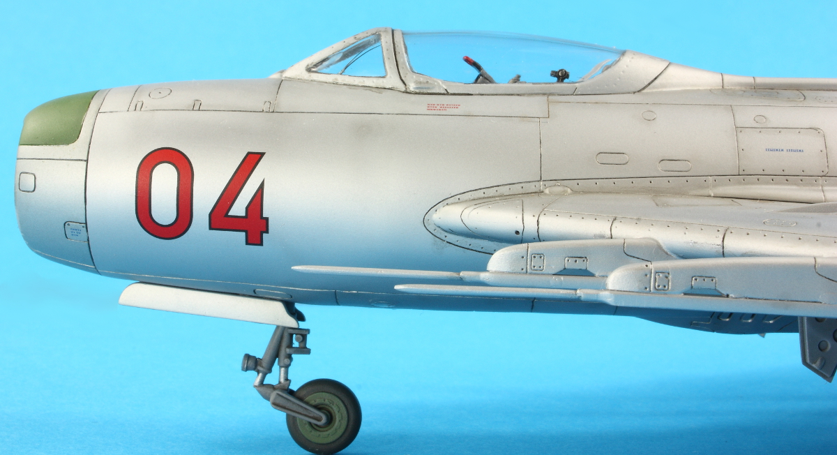 I removed the canopy masking and was delighted there was no fogging or bits of rubbish. Unfortunately though, the windscreen had developed cracks. I’ve no idea where these came from; they weren’t there during masking! The undercarriage was added next and is rather too wobbly for my liking. The MiG-17F was the same. They both shake and shudder in my display cabinet when someone walks past… Adding the undercarriage doors was delightfully straight forward and the aircraft sits pleasingly square. The remaining parts were all added (the antenna mast was pinned) and then some more AMMO Satin airbrushed over the joints to hide any glisten of glue.