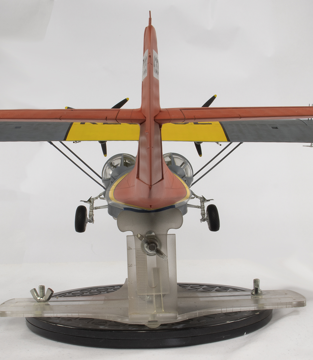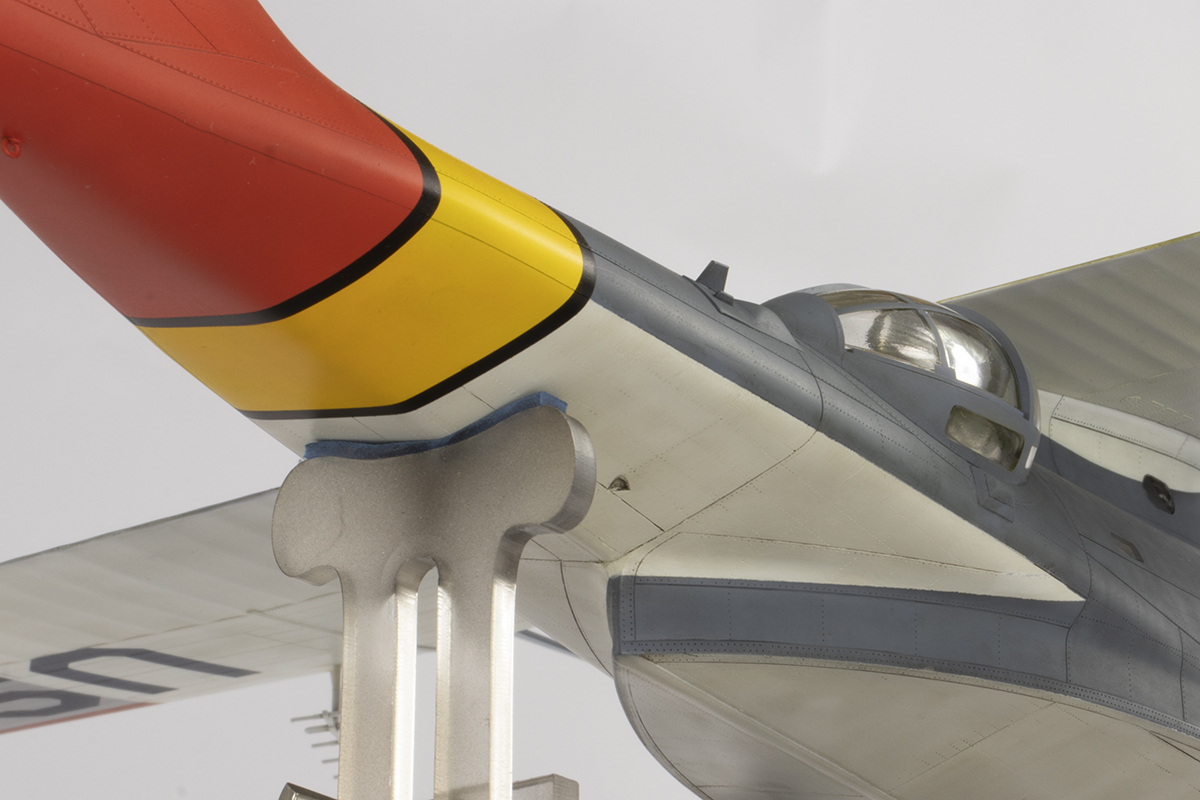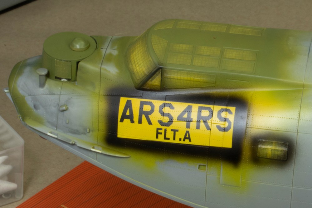 I feel utterly ambivalent about the finished article. On the one hand, I’m glad I sort of finished this project and it gave me a chance to explore and refine new and newish techniques to me: soldering, masking instead of decals and scribing in primer. But I confess it wasn’t much fun getting there, and the end result is pretty useless. Its sheer size made manoeuvring the model around my workbench stressful and it was always knocking into something. The Belcher Bits tail is an essential addition in my view, but takes a lot of work. The basic kit is adequate and I suppose pretty typical for a mid-90s product, but could be so much better in detail in places like the canopy. The weight issue is a nightmare and the undercarriage has already broken. The kit needed what felt like endless additions and modifications to reflect the real thing, and the markings were complex, large and took a very long time to complete, especially as they all needed to be drawn from scratch. Lastly, I’ve nowhere to put it, even if it could stand on its own three legs.