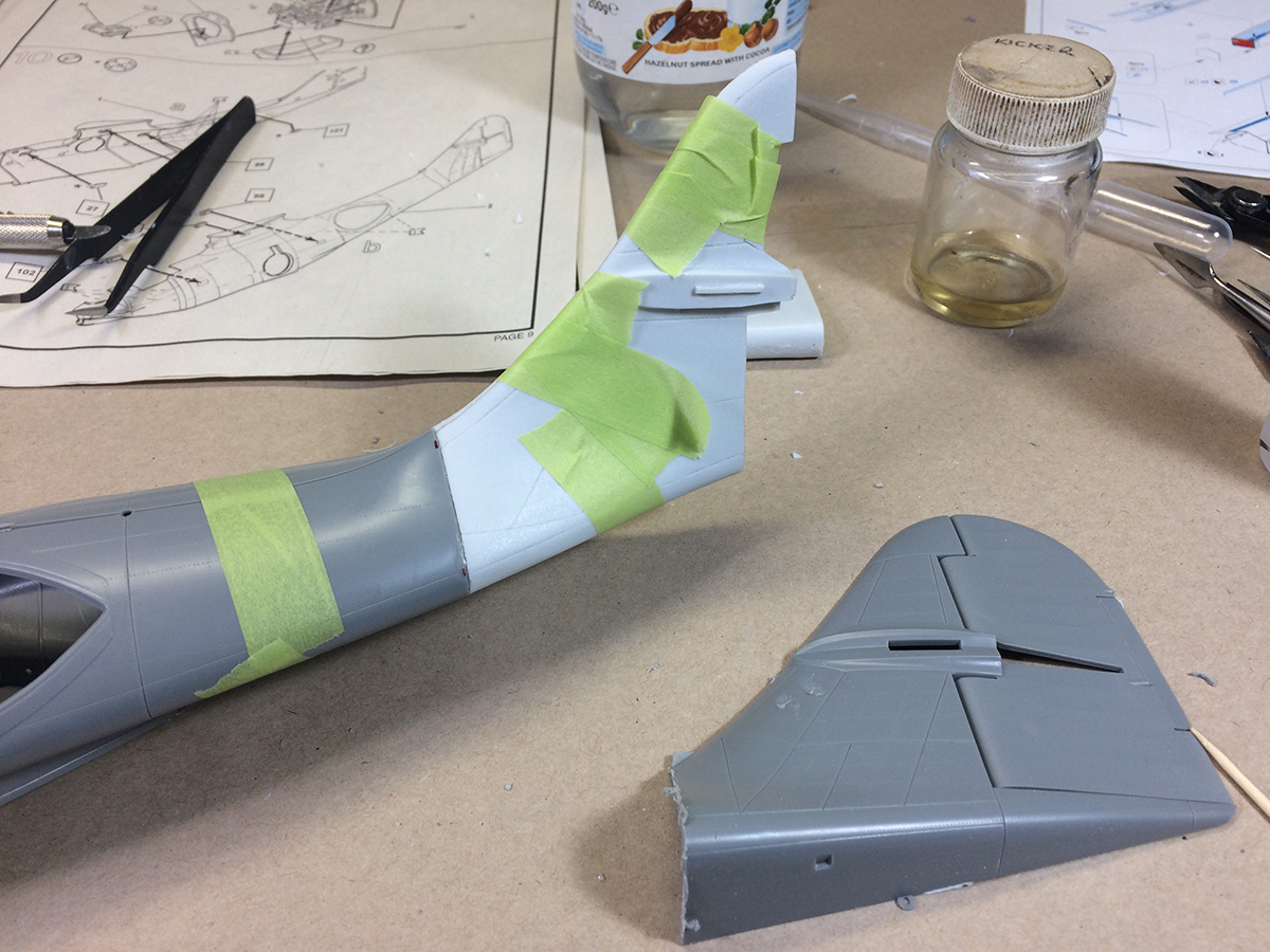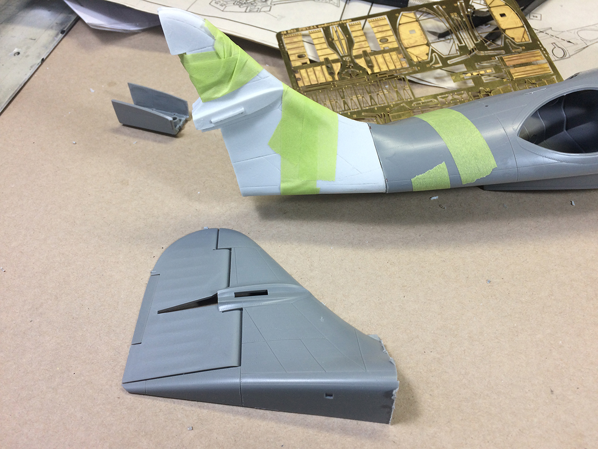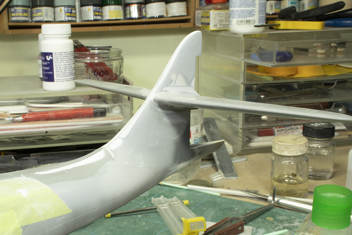 In 2018 I came into a little money and (amongst other things) I decided to splurge on getting the corrected tail direct from Belcher Bits. It is a big chunk of resin. The shape is, in my opinion, infinitely better than what comes in the kit, but this is a correction set that takes some work to use. I wanted to completely redo all the surface detail to better match the injection moulded plastic, and there would inevitably be a lot of body work to blend the tail into the fuselage. The resin is quite hard, which helps. If you intend to use this set, be prepared to put quite a lot of effort in.
