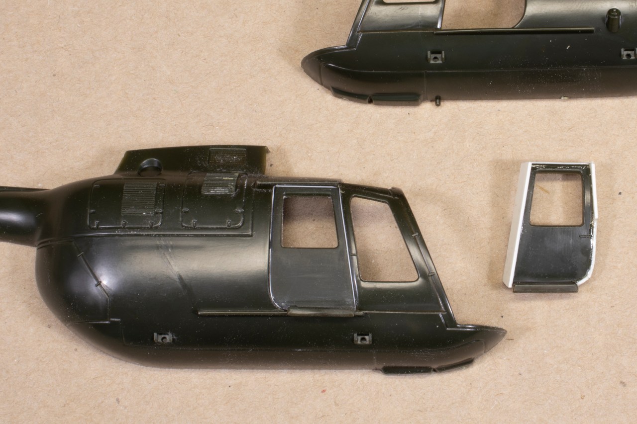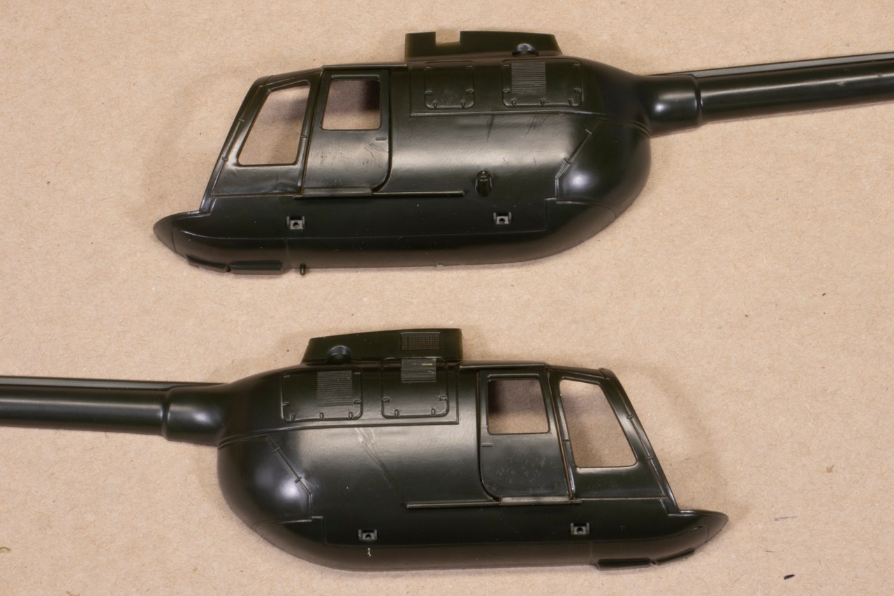 German Army Bo105s come in a single basic scheme of RAL6003 Green and RAL9011 Black (or similar). There is discussion online as to whether these changed over time, but any change is minor. Several of the kit schemes are for special markings and did not catch my fancy, especially as the decals looked unreliable. I therefore plumped for a standard machine, 86+32, provided in the kit. Unfortunately I could not find any photographic references for this helicopter and so had to rely on other airframes as analogues.