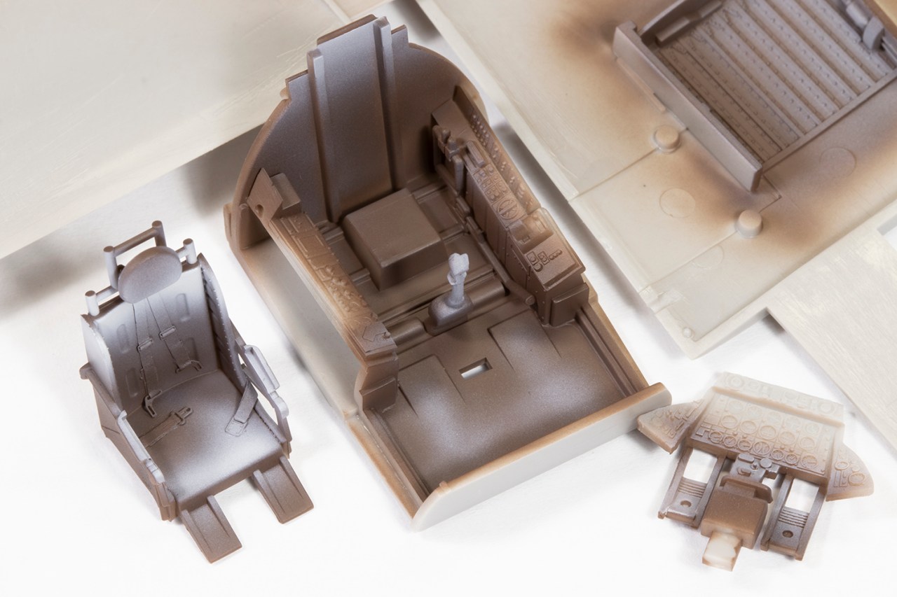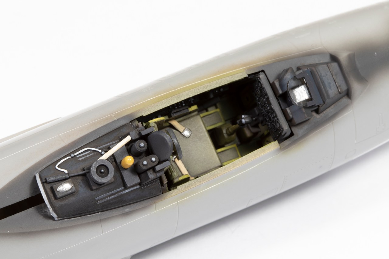 Revell provide very nice cockpit detail, especially the instrument panel. I went for a combination of white and mahogany primers to provide some preshading for the very thin mix of Mr Color 351 Zinc Chromate Type I over the top, and the same for the Mr Color 352 Chromate Yellow Primer I used for the undercarriage bays. I highlighted the raised detail with a light mix of black and yellow Vallejo acrylics for some decent contrast. In combination with some Sepia oil paint washes I ended up with an effect I was pleased enough with, especially through a closed canopy.