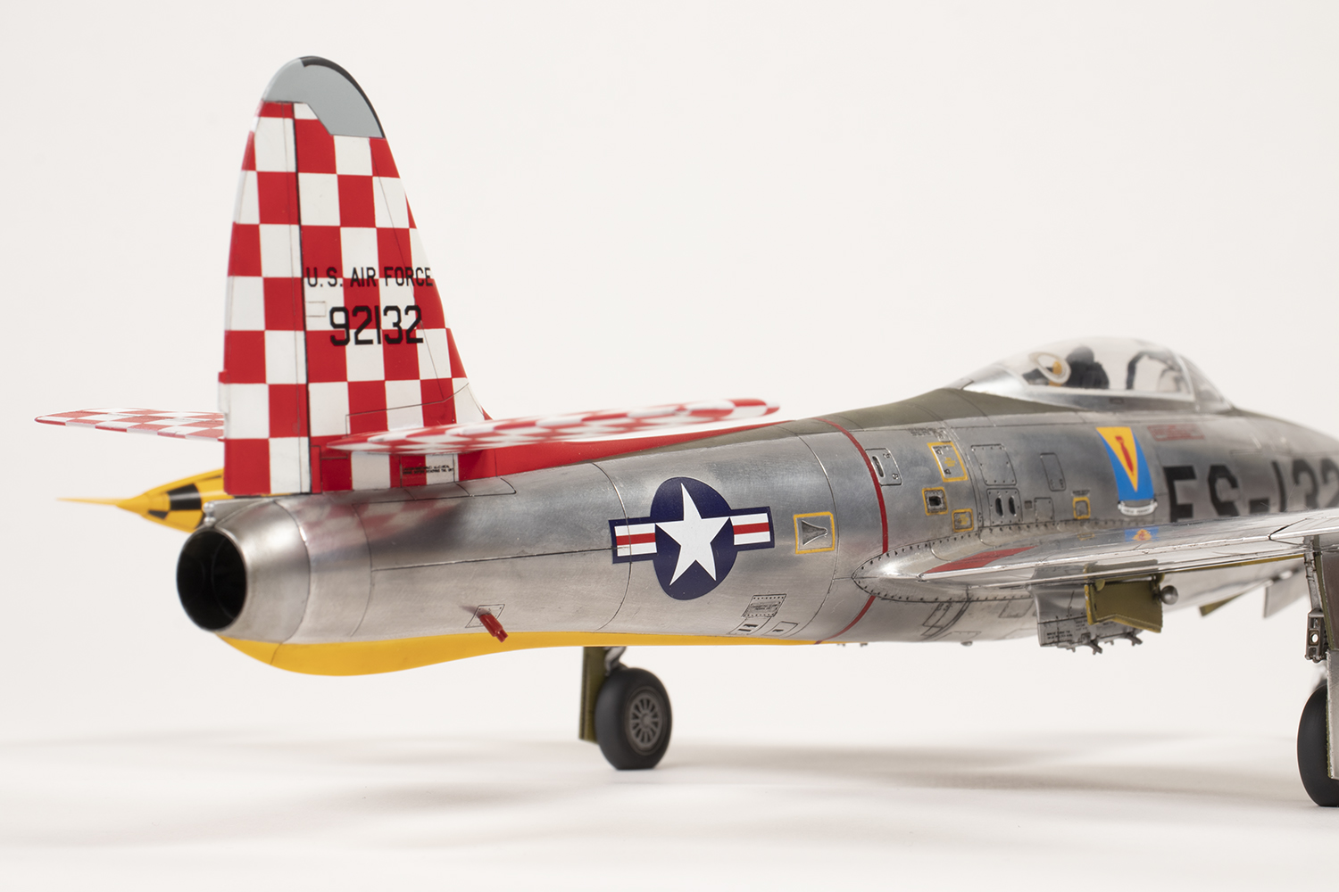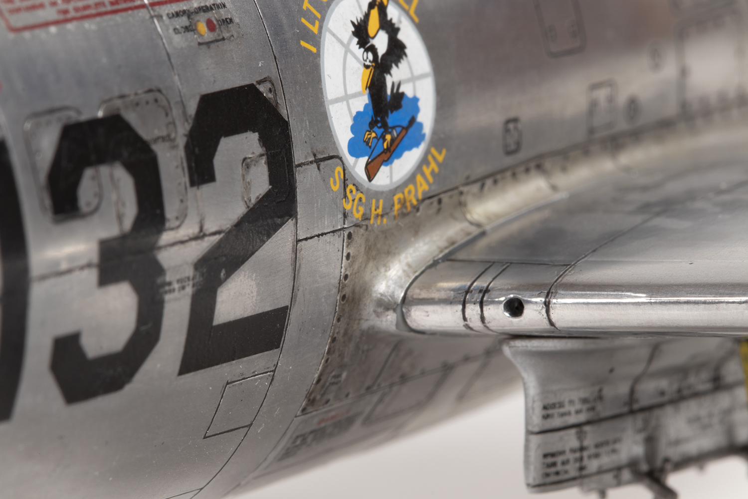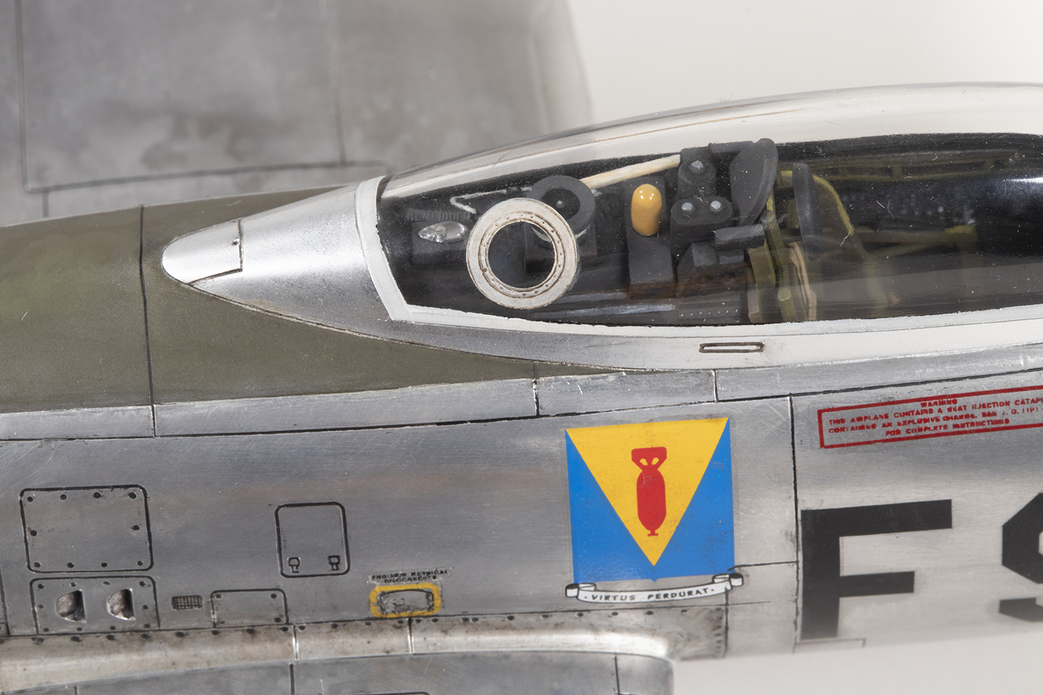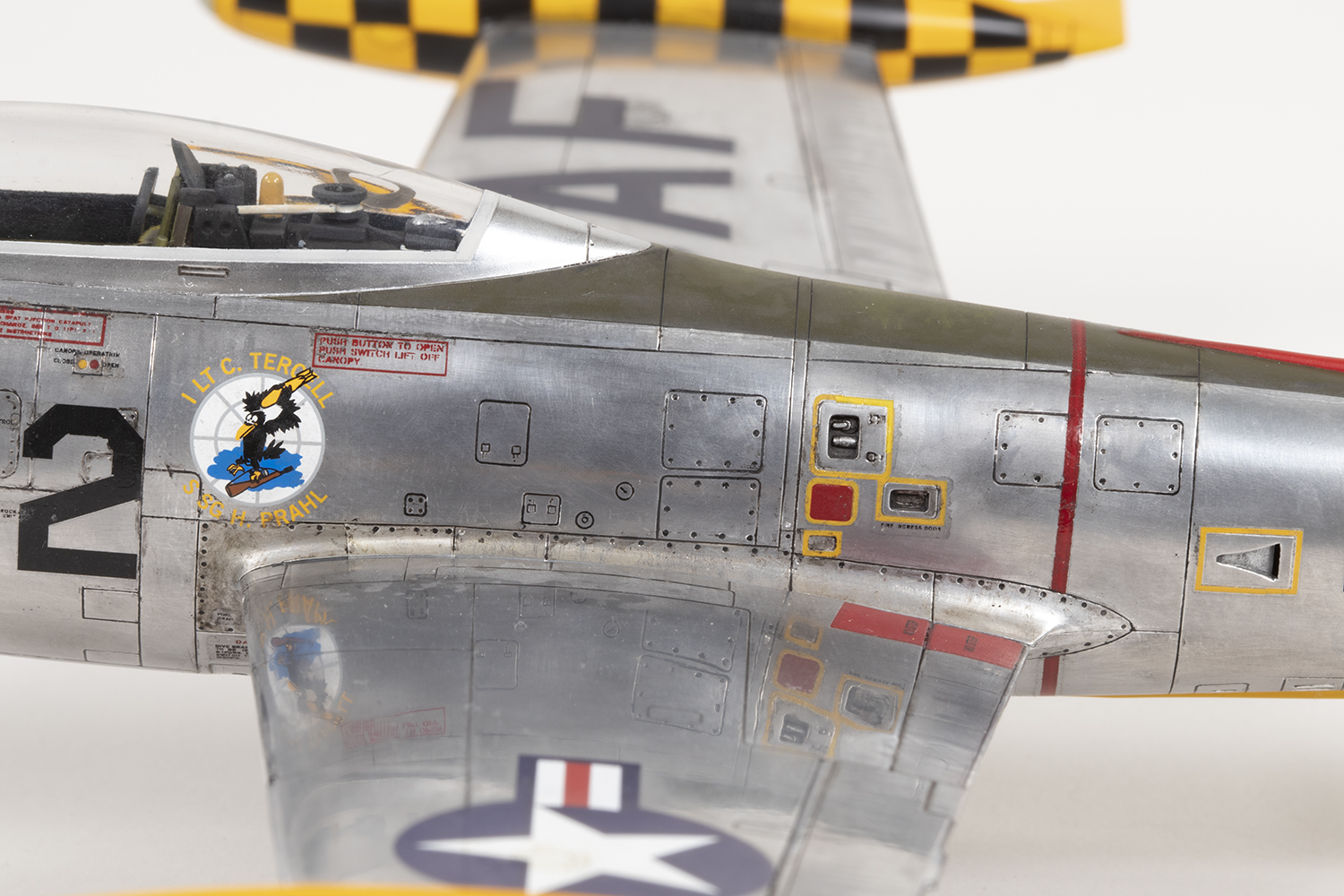Stencils are a feature of the F-84 and I was looking forward to applying them. It was a disaster. The Revell decals are quite thick and the edges of the carrier film are rough. All the Revell stencils wrinkled. I tried every application method to avoid this: water only, Microscale, UMP, Daco, Gunze…each method produced identical results – horribly wrinkled and rough stencils. I pulled most of them off but had to leave those around the hatches as they are so distinctive. This is by far the aspect of the finished model I dislike the most.