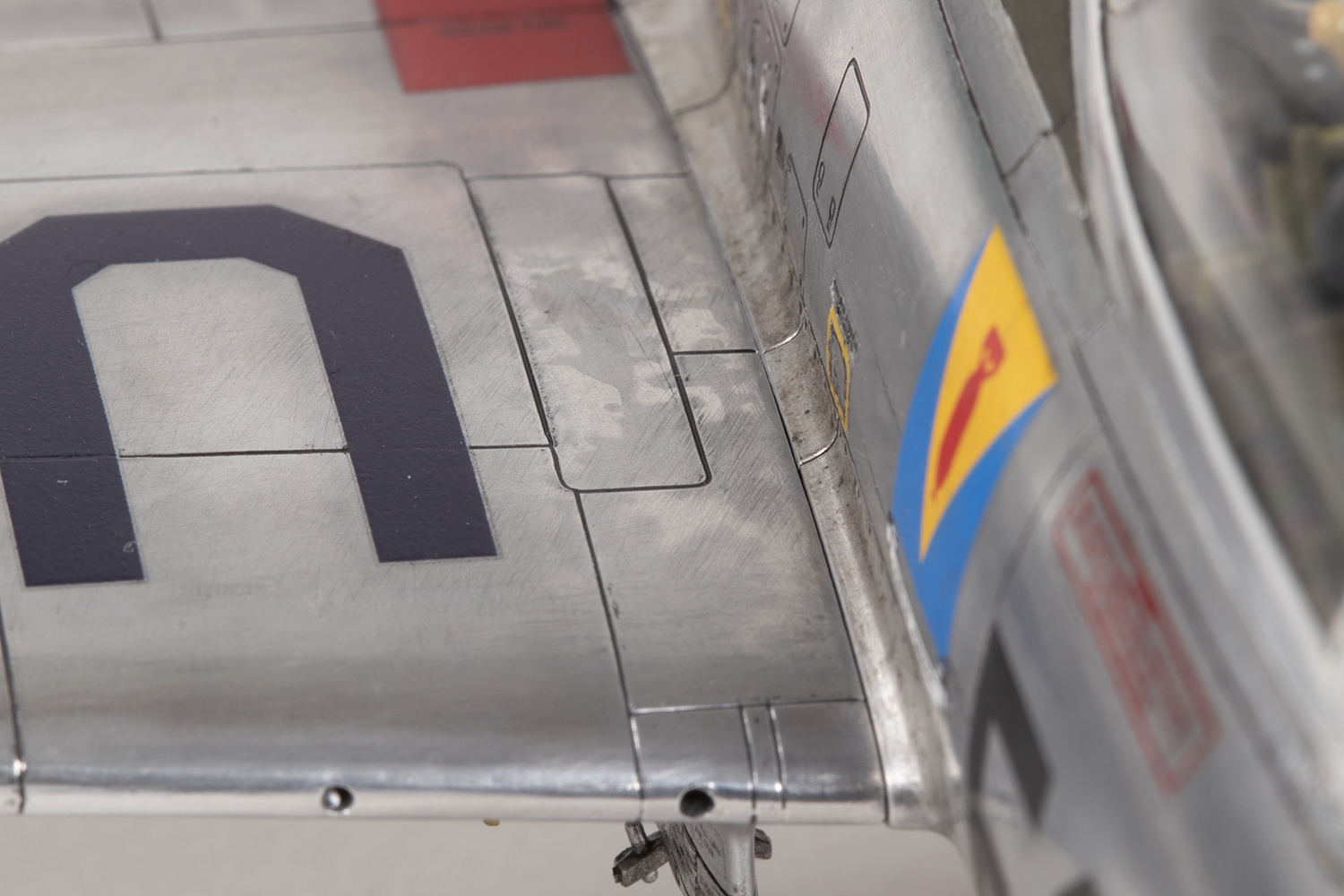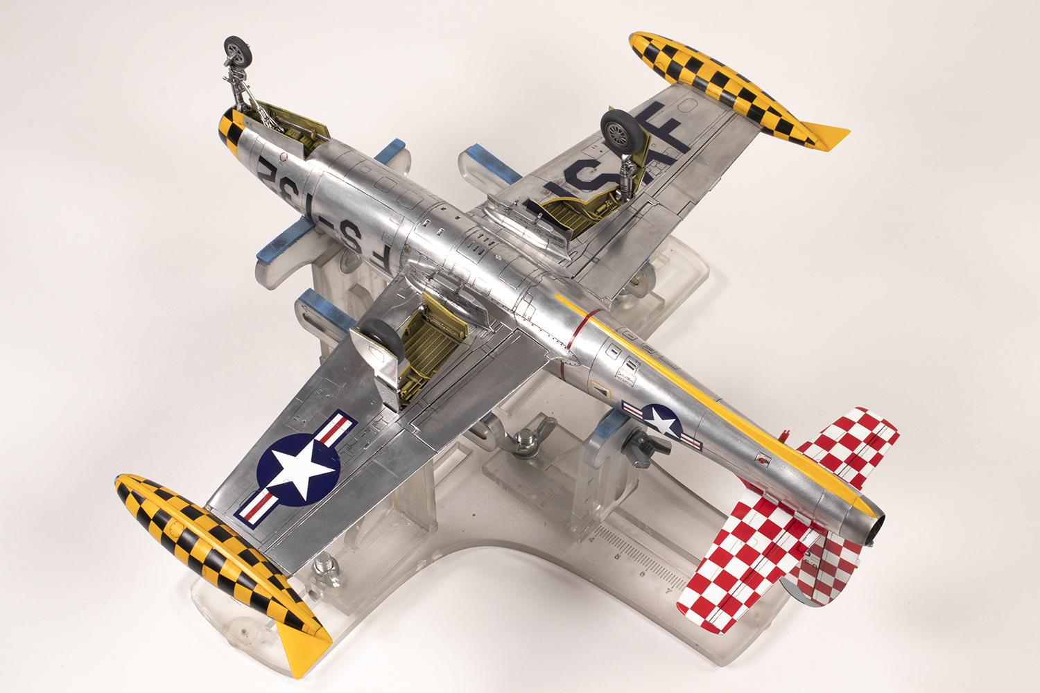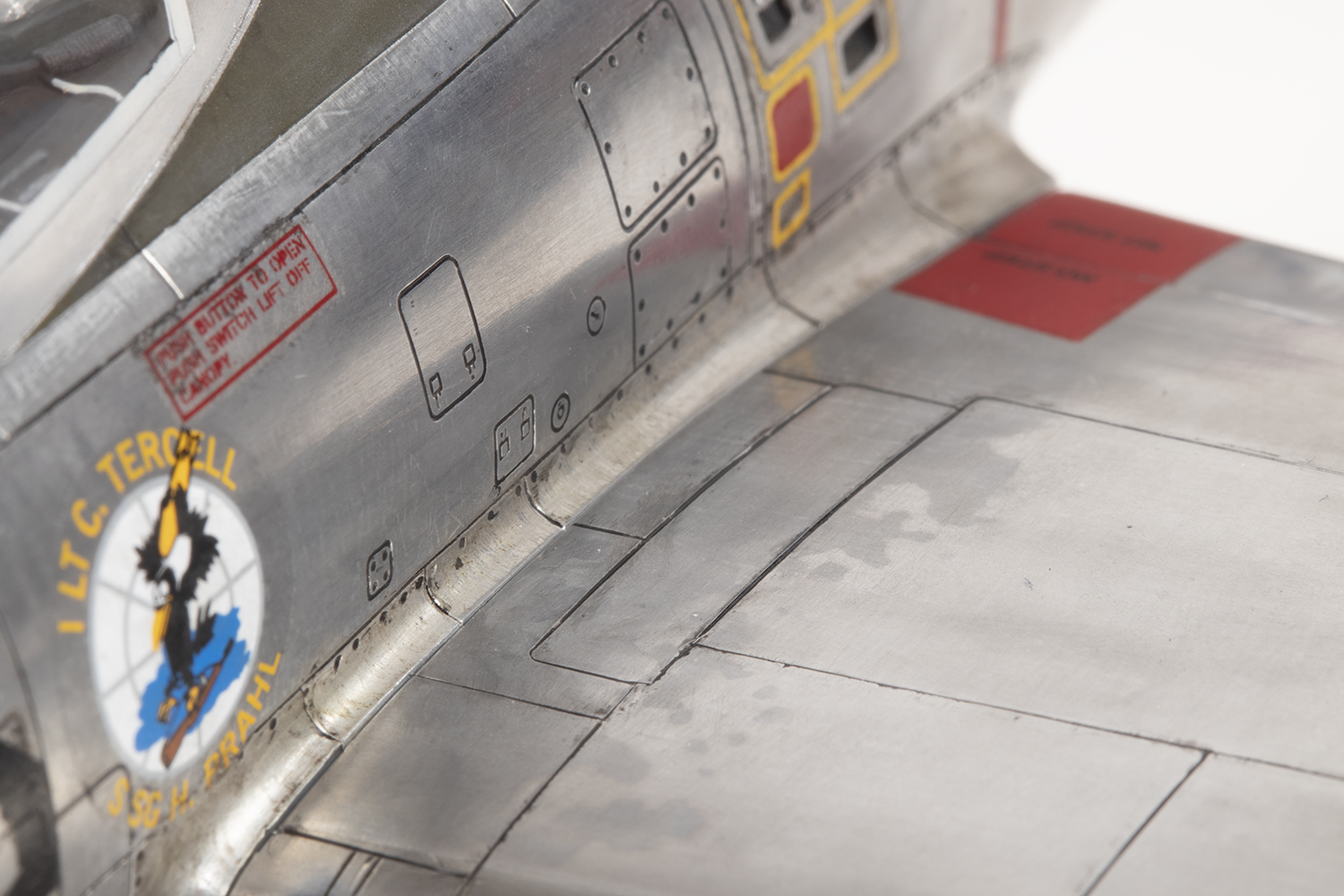 Stencils are a feature of the F-84 and I was looking forward to applying them. It was a disaster. The Revell decals are quite thick and the edges of the carrier film are rough. All the Revell stencils wrinkled. I tried every application method to avoid this: water only, Microscale, UMP, Daco, Gunze…each method produced identical results – horribly wrinkled and rough stencils. I pulled most of them off but had to leave those around the hatches as they are so distinctive. This is by far the aspect of the finished model I dislike the most.