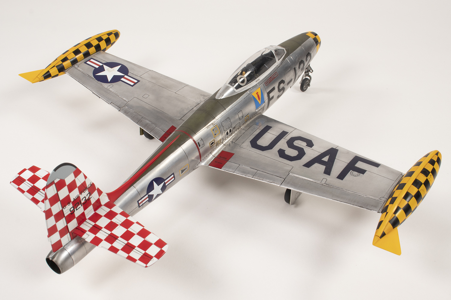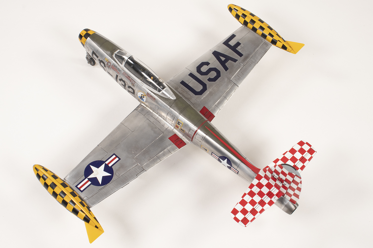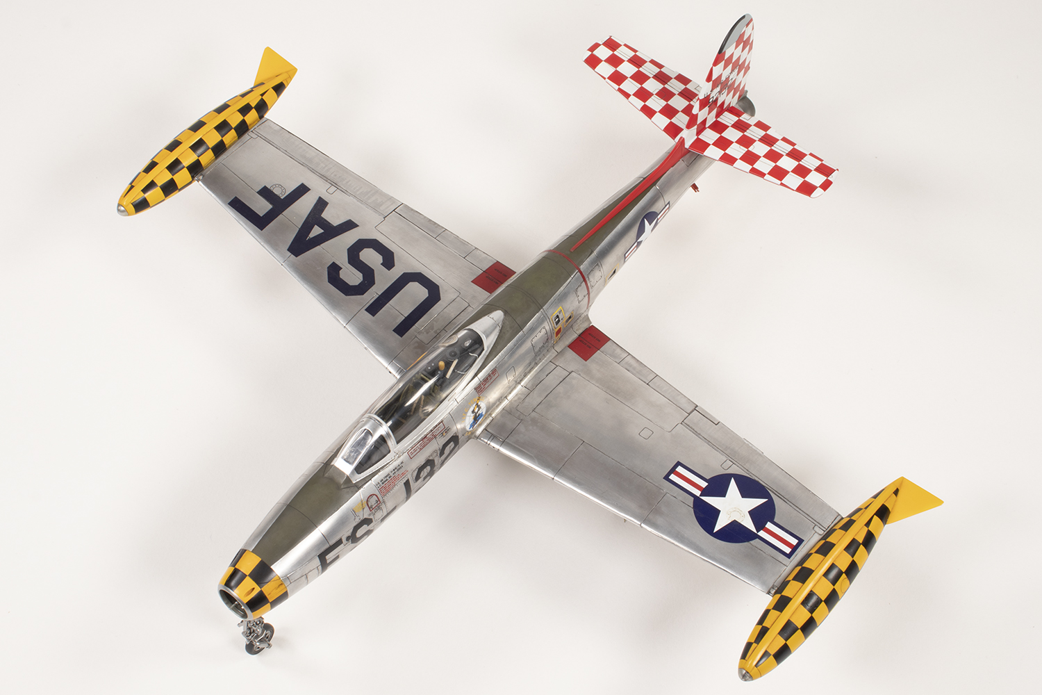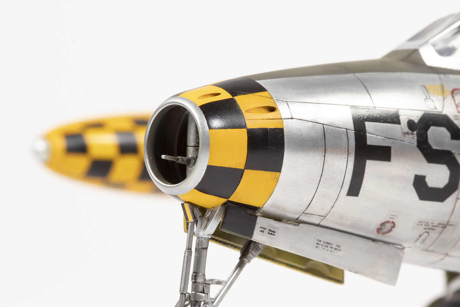 Stencils are a feature of the F-84 and I was looking forward to applying them. It was a disaster. The Revell decals are quite thick and the edges of the carrier film are rough. All the Revell stencils wrinkled. I tried every application method to avoid this: water only, Microscale, UMP, Daco, Gunze…each method produced identical results – horribly wrinkled and rough stencils. I pulled most of them off but had to leave those around the hatches as they are so distinctive. This is by far the aspect of the finished model I dislike the most.