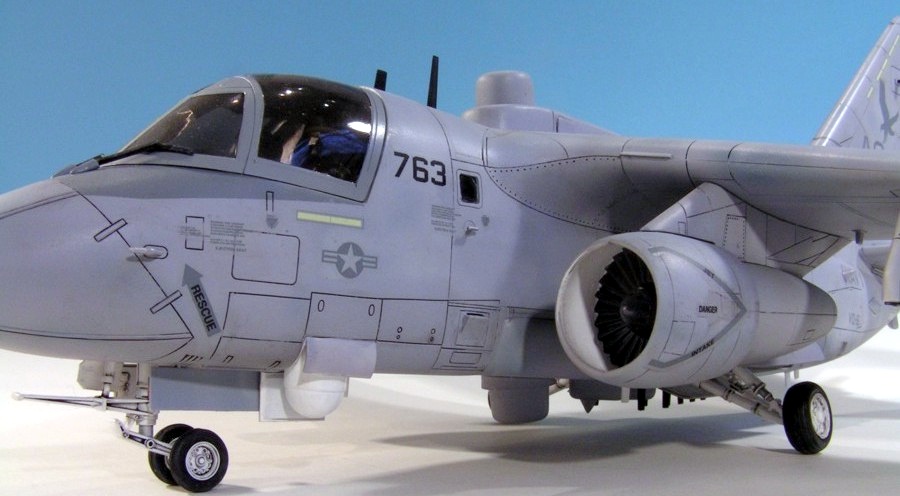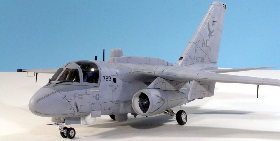 AMT reissued the Esci S-3 Viking in this ES-3A Shadow ELINT version. It’s a great kit with very good fit and nicely scribed detail. The cockpit is very bare, but can hardly be seen through the darkly tinted canopy. I built this kit without aftermarket, but made a couple of modifications to make it more accurate following Ted Taylor’s article in Scale Models International. One of these was to reverse the new doors supplied for the electronics bay — the instructions would have you install them upside-down. The wheels ended up at a funny angle and I can’t remember why. They turned out okay on my S-3A… The finish is Gunze Sangyo acrylics with a Klear finish and an oil wash. The kit decals were used and were fine.