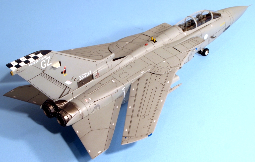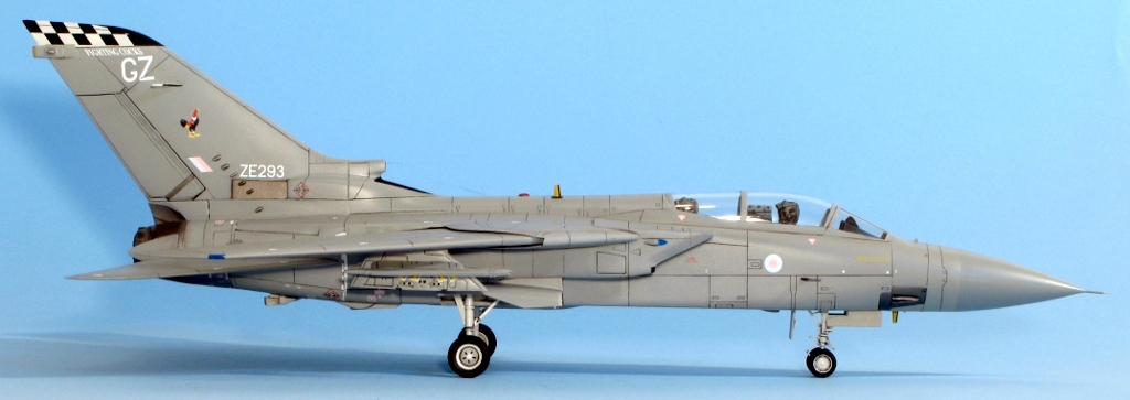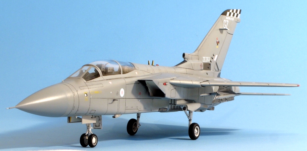 This is a much maligned kit! Italeri’s Tornado is a bargain kit (I paid less than £10 for this one in 2001) that is a basic, but good starting point. I used Peter Looper’s articles in Scale Models International from Spring 1995 to make some small modifications and find out which bits and pieces I needed to make the essential corrections. In the end I used Paragon resin seats, pylons, fin correction and engine cans (with chaff dispensers). I closed the cockpit and thought the kit interior was perfectly adequate for this. Peter points out that the Italeri interior is for the trainer version of the ADV, so I sourced some Model Alliance decals which had an F.3(T) on the sheet.