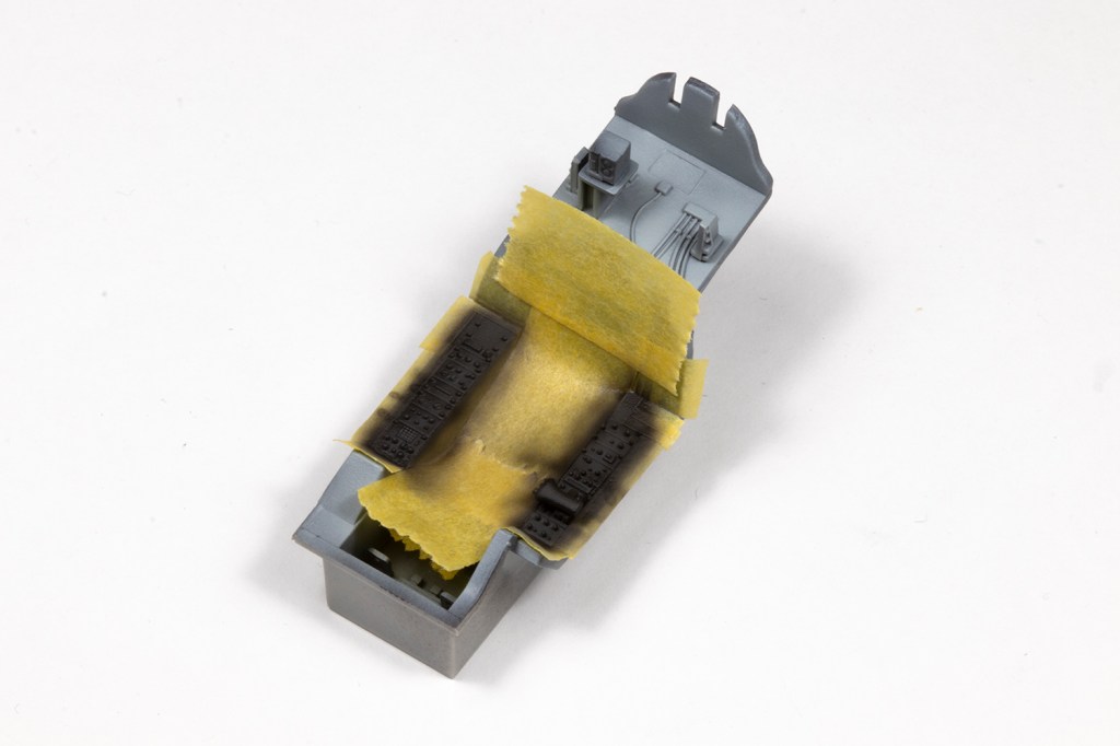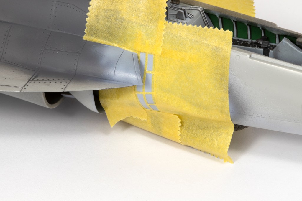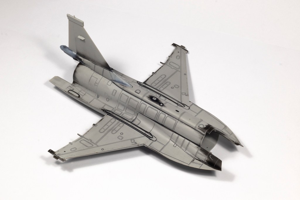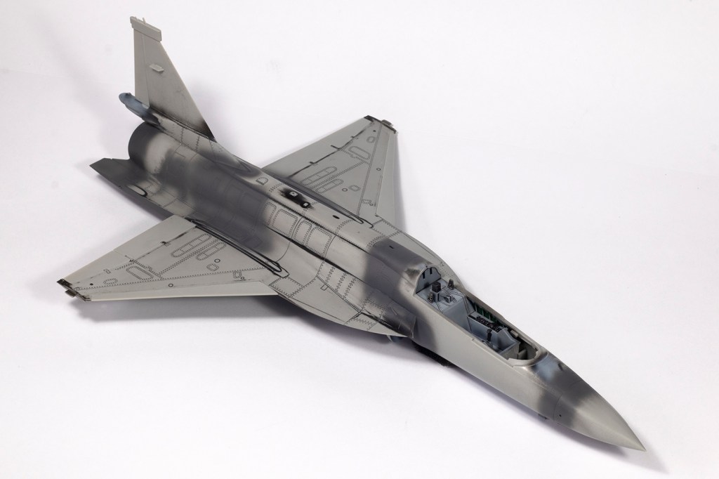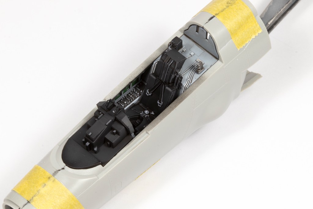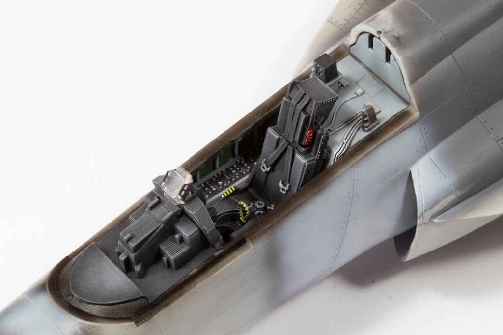 The intakes are not full length, but thanks to their unusual geometry, where the outer sides are swept forward, it’s very difficult to see up them and you can’t tell there’s no engine face. I did spend some time removing ejector pin marks from their inner surfaces, but it’s wasted effort really as you could never have seen them.