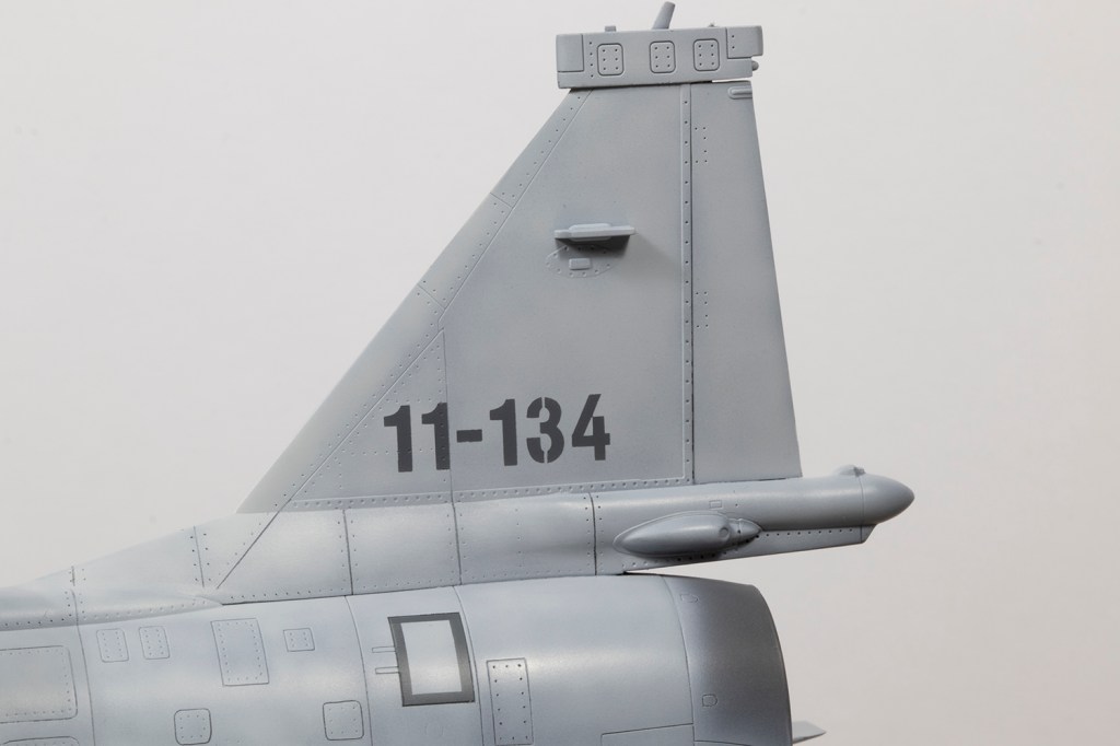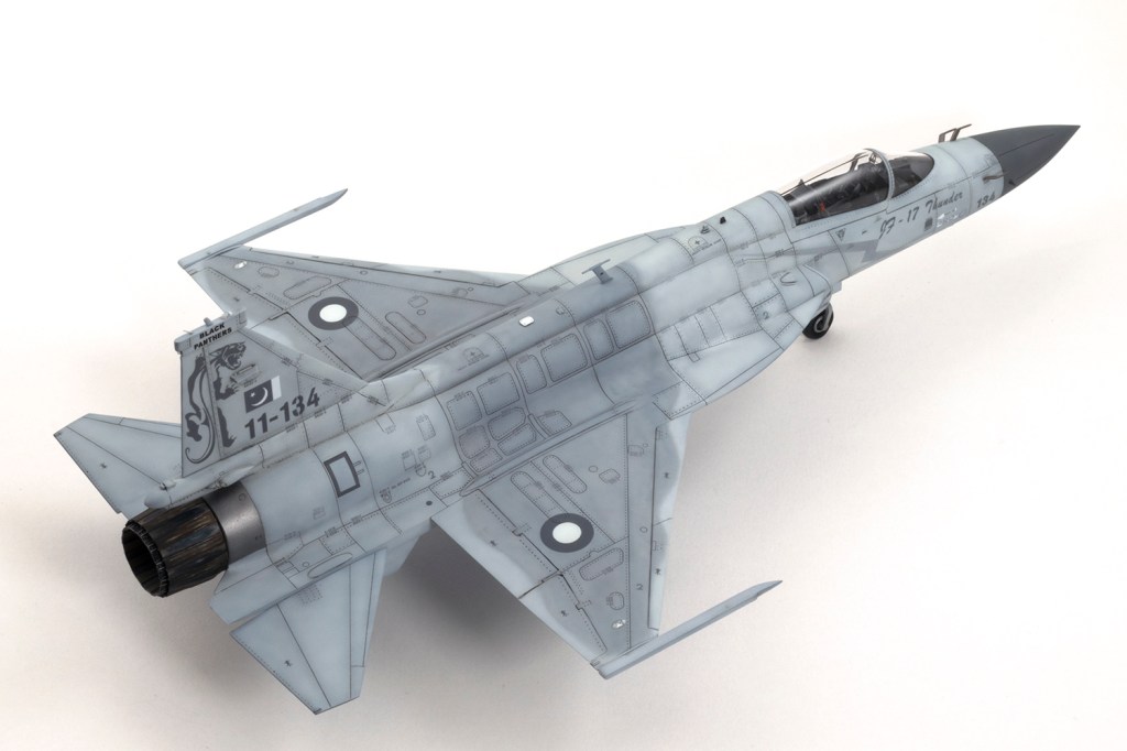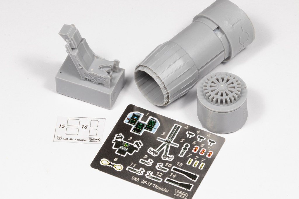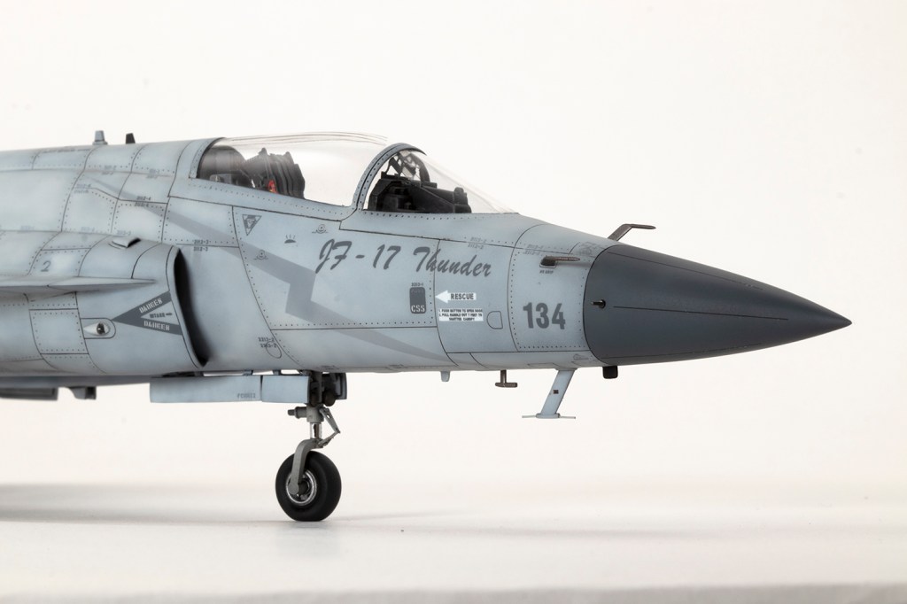 To my eye looking like the melding of an F-5 with a Gripen, the JF-17 has been around for a couple of decades and equips around eight squadrons of the Pakistani Air Force. Although it is a joint venture between Pakistan and China, the latter do not operate it, but it has thus far been exported in small quantities to Myanmar and Nigeria. Produced in three blocks, the kit represents a Block 1 aircraft, but the external differences appear to be minor as the aircraft has evolved. I purchased a Wolfpack resin and PE update set which mainly provides the correct ejection seat and a better detailed engine exhaust.