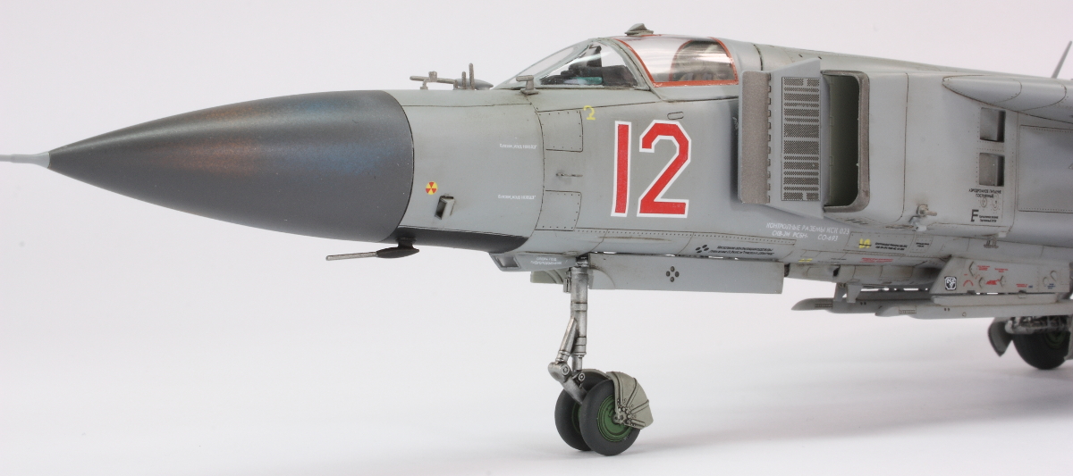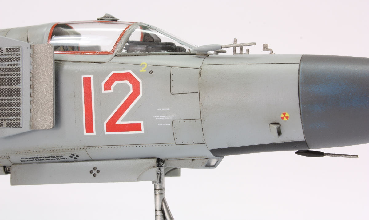- The nose is apparently not right. I can’t say I really noticed this, but following my love of grafting resin noses onto Soviet MiGs, I bought the Metallic Details corrected nose. This is significantly longer than the kit nose.