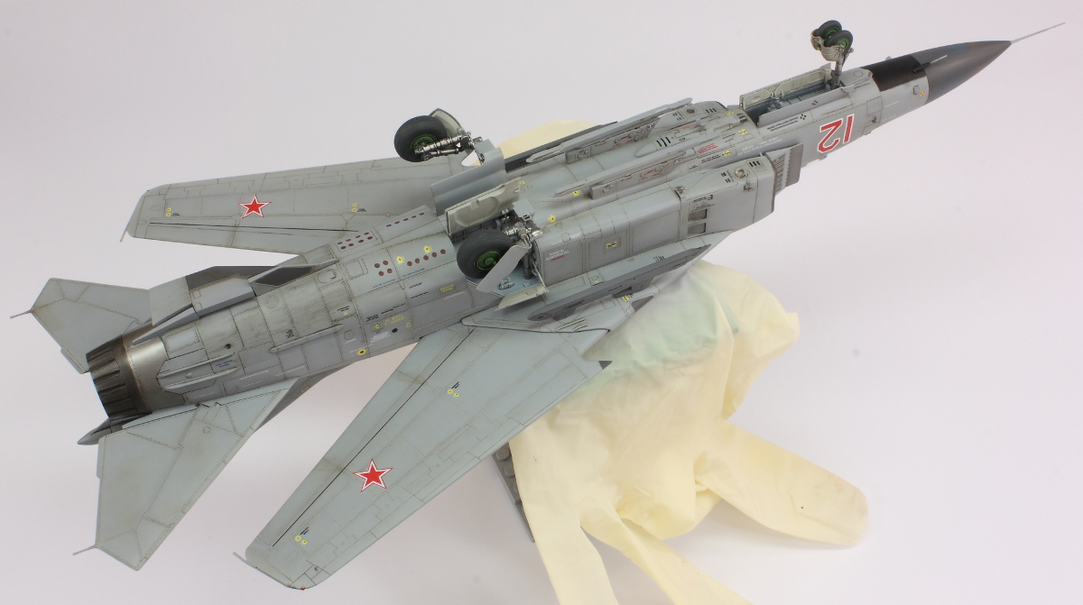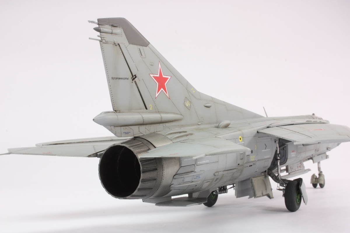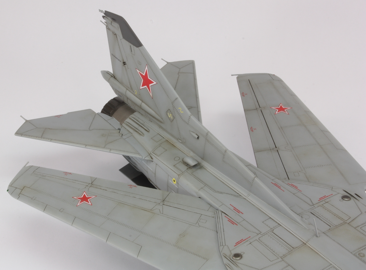 - The rudder hinges are wrong for a Flogger-B, quite noticeably so once you see it. I bodged this by filling one of them in and reshaping. This is still not accurate as the single hinge should be a different shape, but it is a reasonable fudge.