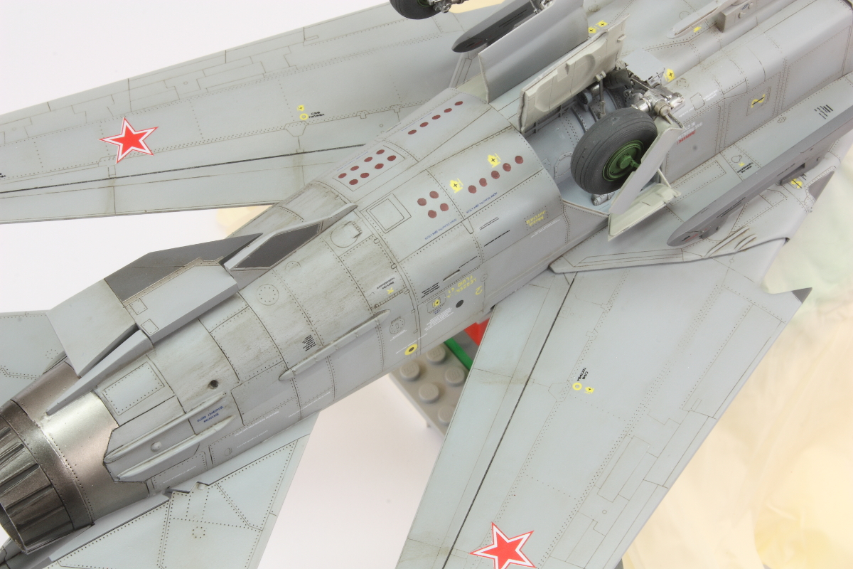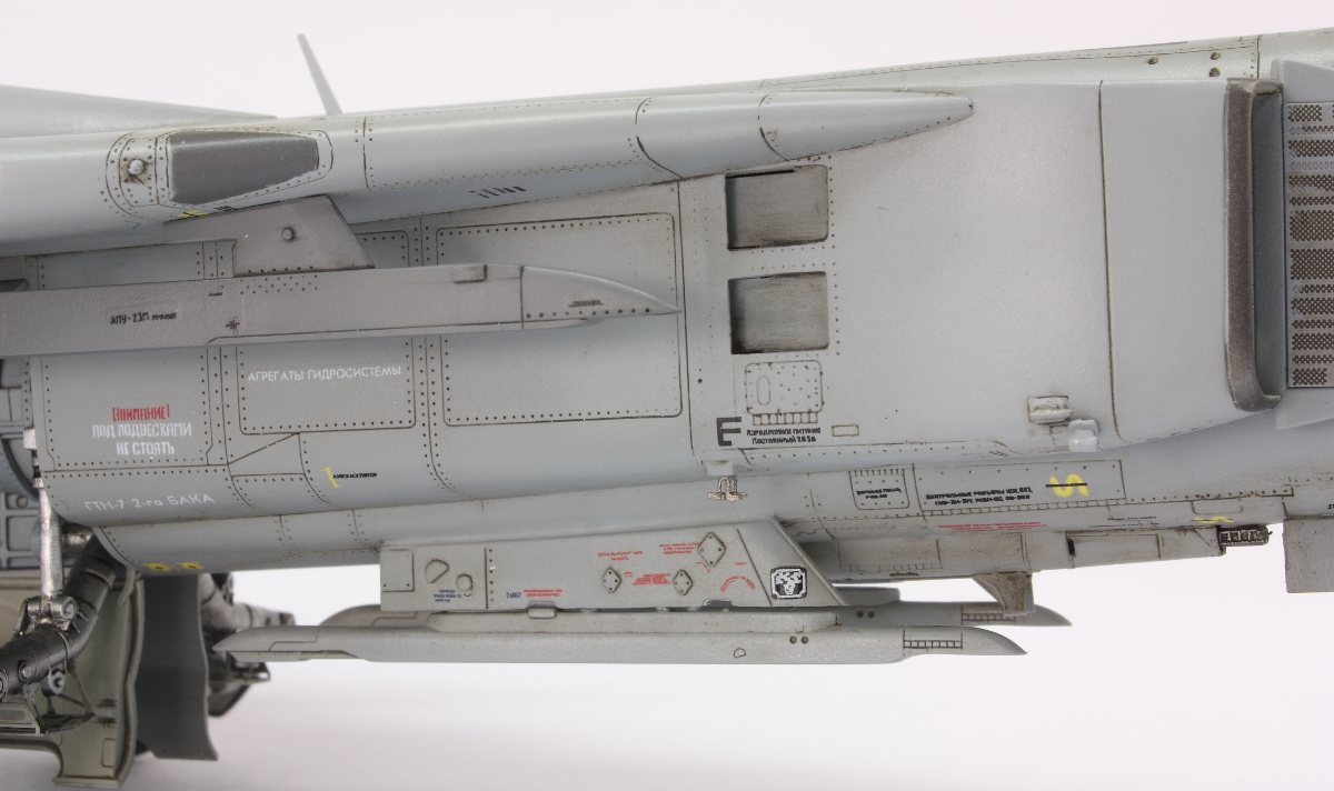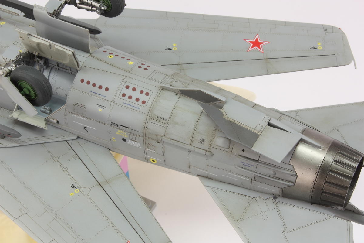 - The fuselage has all kind of minor mistakes over it if one is making a Flogger-B. These were helpfully listed on ARC Forums but unfortunately the thread was a casualty of software problems there. Most of these I did not correct, but some, like the canopy release handle and filling the circular depressions on the rear underfuselage I did fix. If anyone wants the full list feel free to contact me; I saved it from the original post and still have the text and images.