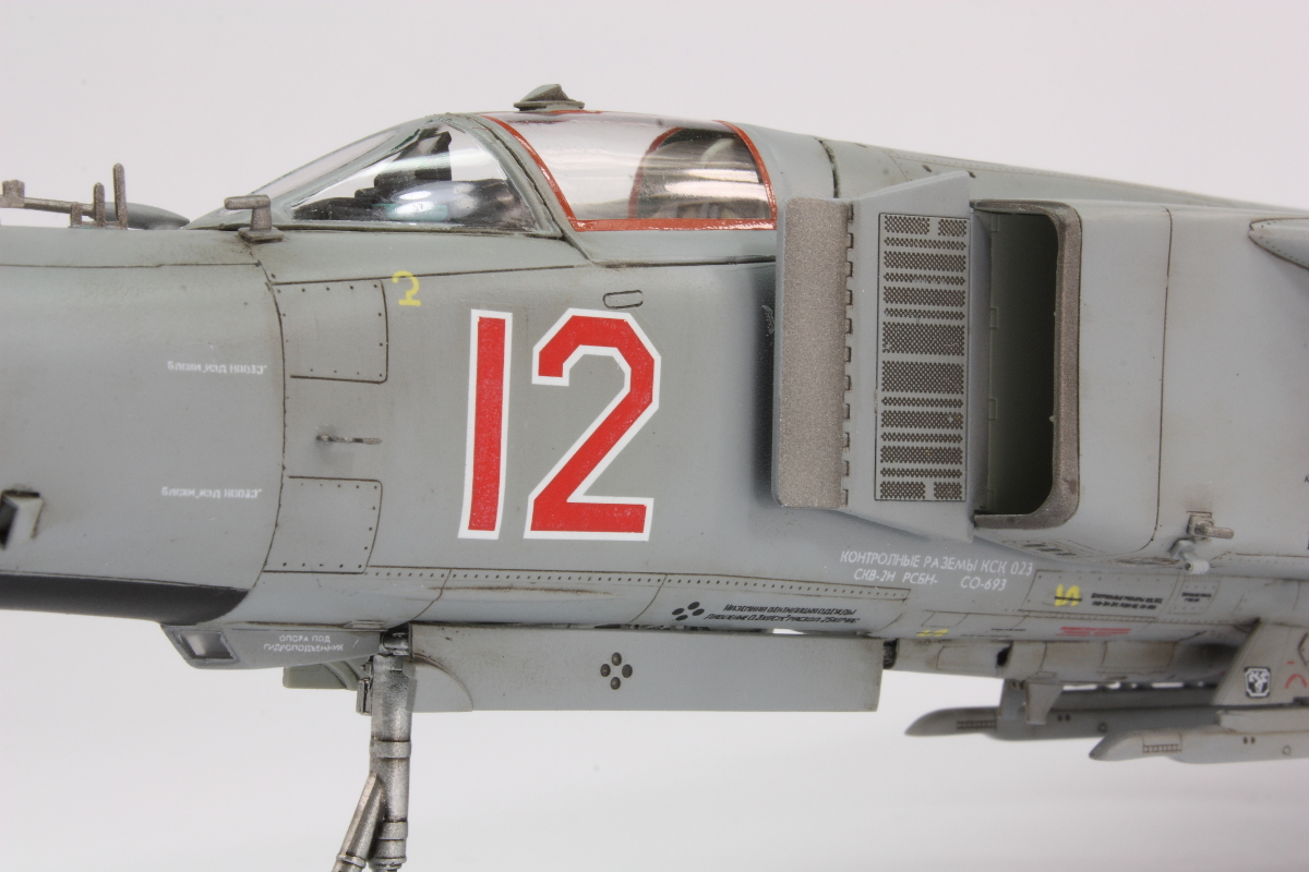 Trumpeter provide a single decal option, for Yellow 49. There are no other aftermarket options available for a grey MiG-23M, and I had set my heart on a grey MiG-23. In messing around on the internet, and getting frustrated at the lack of good photos of grey Flogger-Bs and the absence of any aftermarket decals, I decided to build this example: