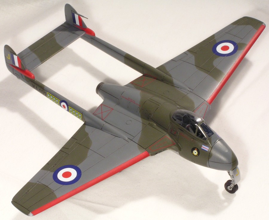 I don’t think any models in my collection have consumed as much filler or sanding time as these little Vampires. The only exception would be the Javelin, but then that is a vac-form! That’s not to say these are bad kits, but it would take a lot of motivation for me to build another. To the single-seat fighter-bomber I made a lot of changes and additions, which didn’t help the overall build time. These included: